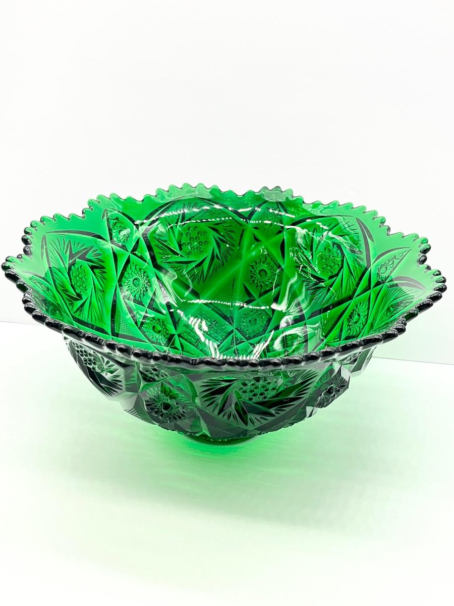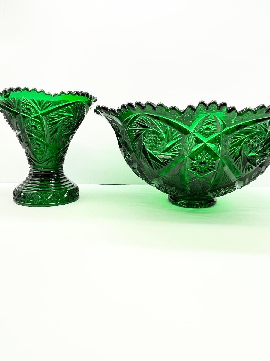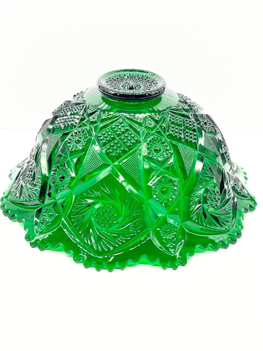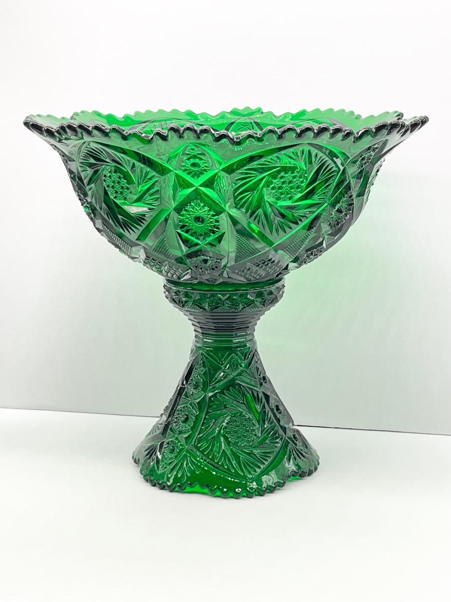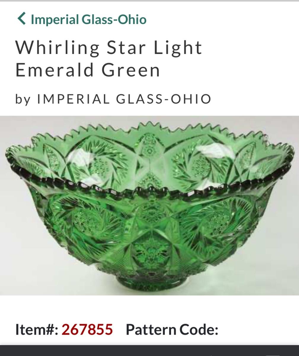 IMPERIAL GLASS ~ Whirling Star Light Emerald Green ~ Punch Bowl & Stand