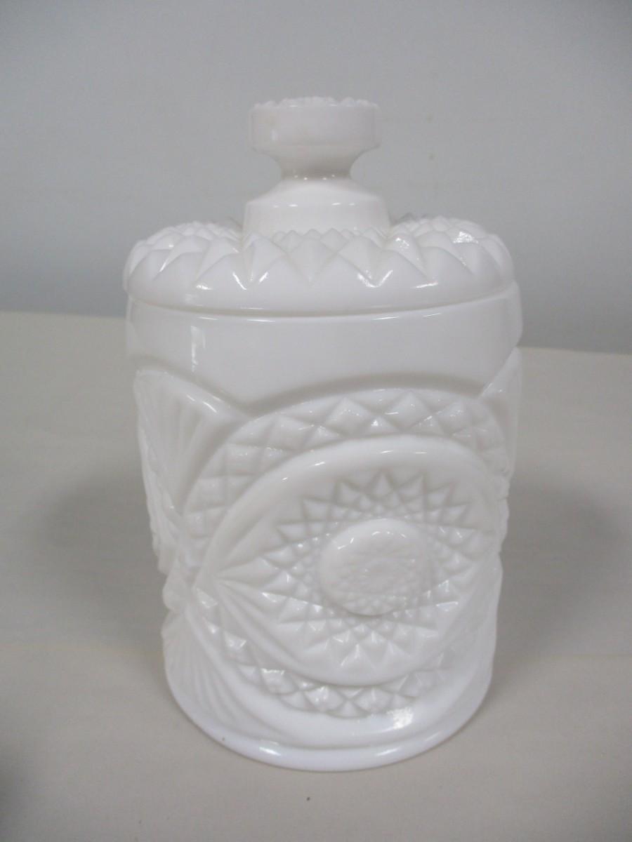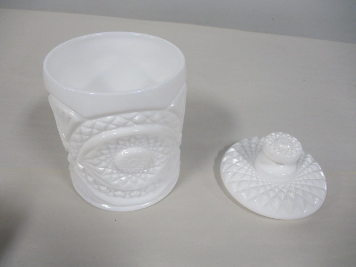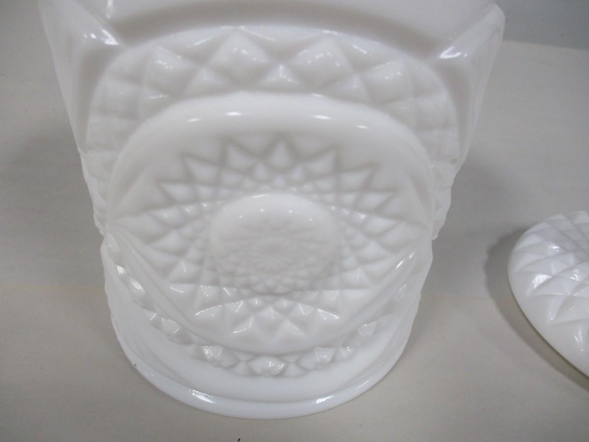 Imperial Hobstar White Milk Glass Biscuit Jar