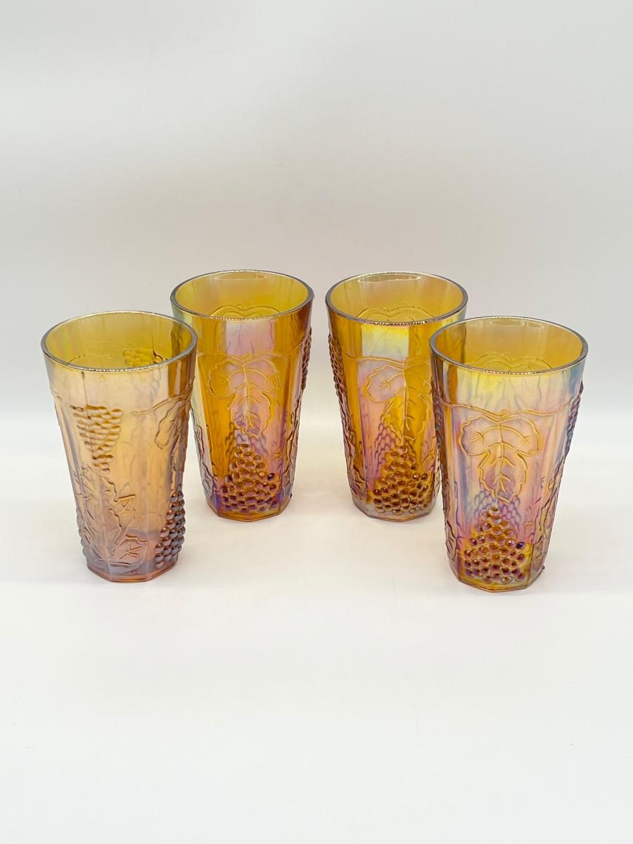 IMPERIAL INDIANA ~ Four (4) Carnival Amber Grape Iridescent Tumblers