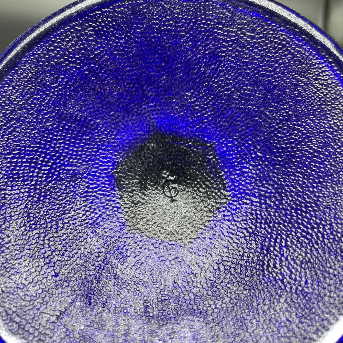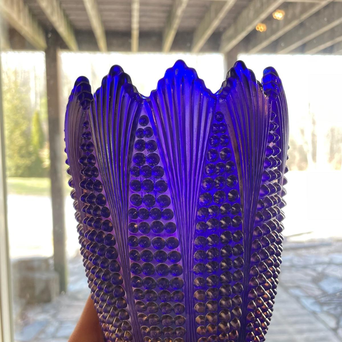 Imperial blue carnival glass corn vase measures