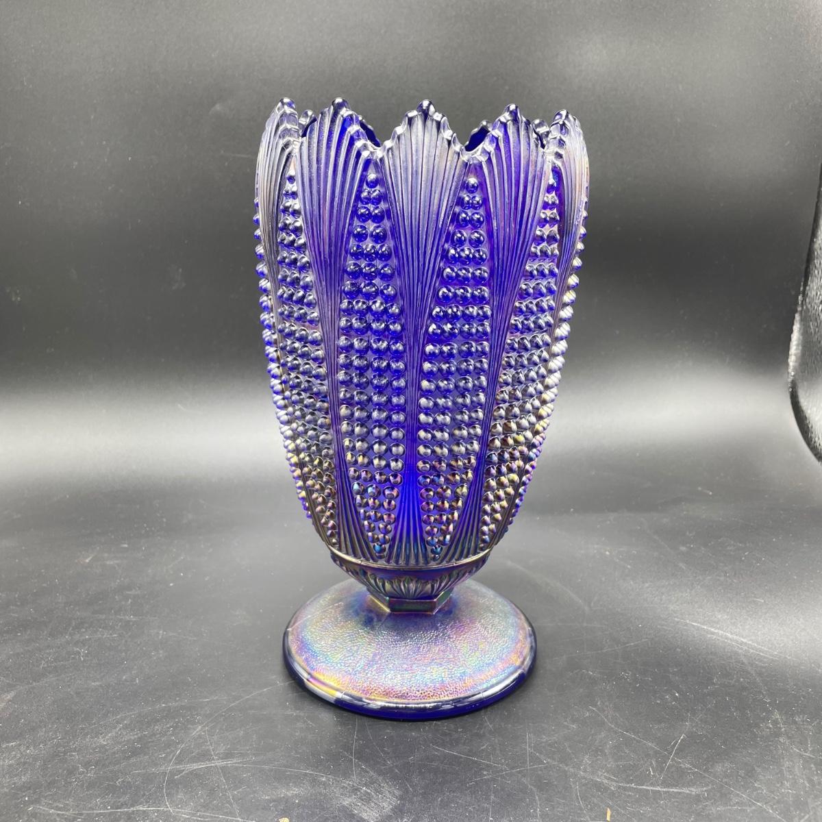 Imperial Iridescent Blue Carnival Glass Corn Vase (FR - SS)