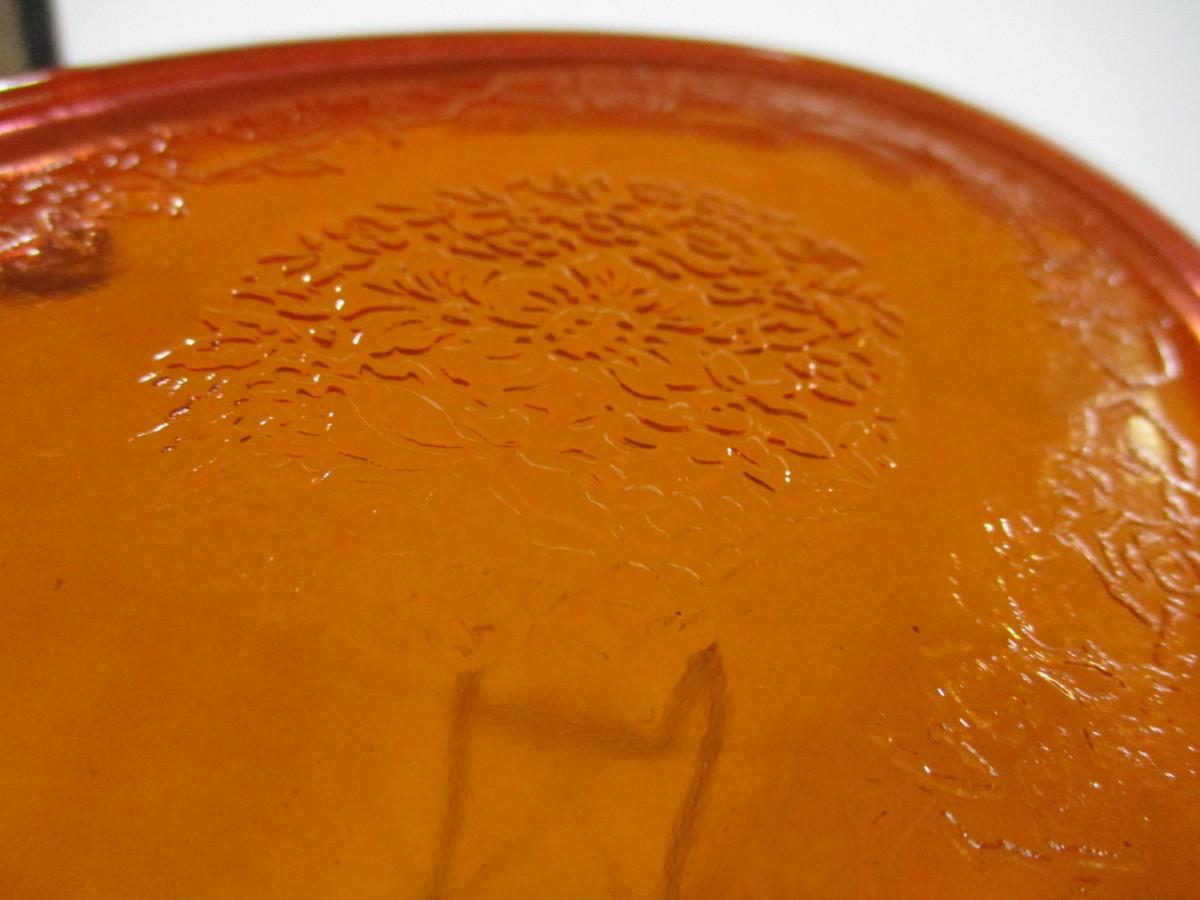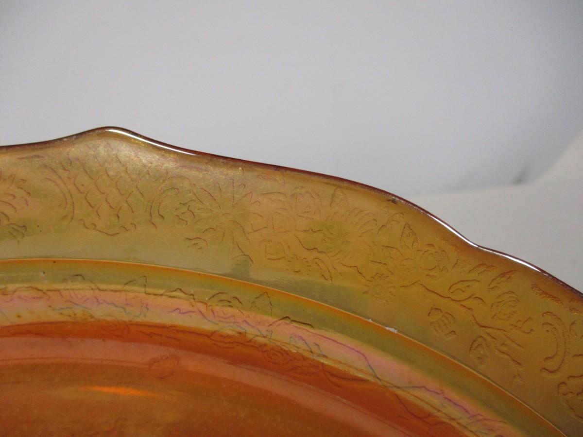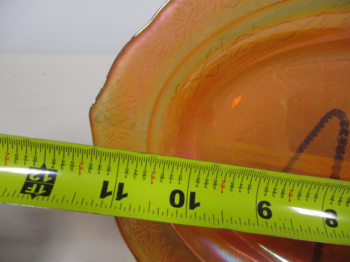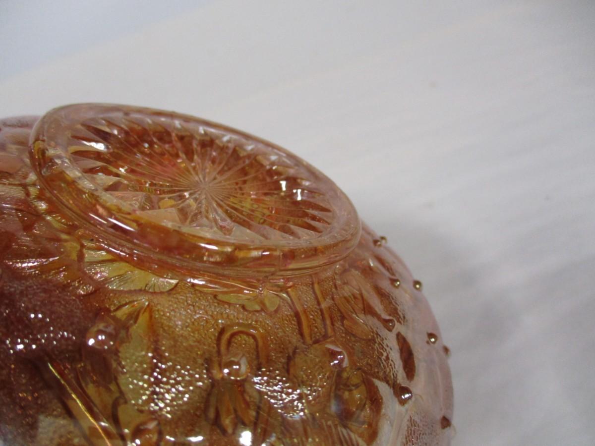 Imperial Marigold Carnival Glass Pansy Diamond Quilted Nappy With Handle