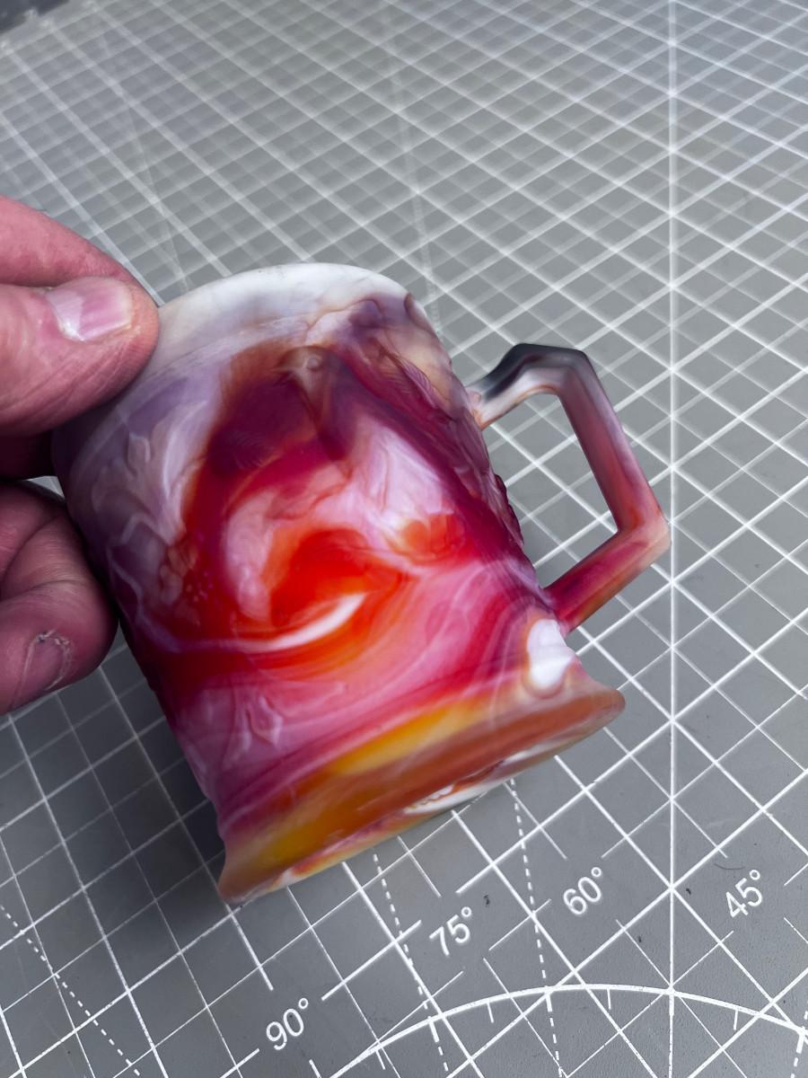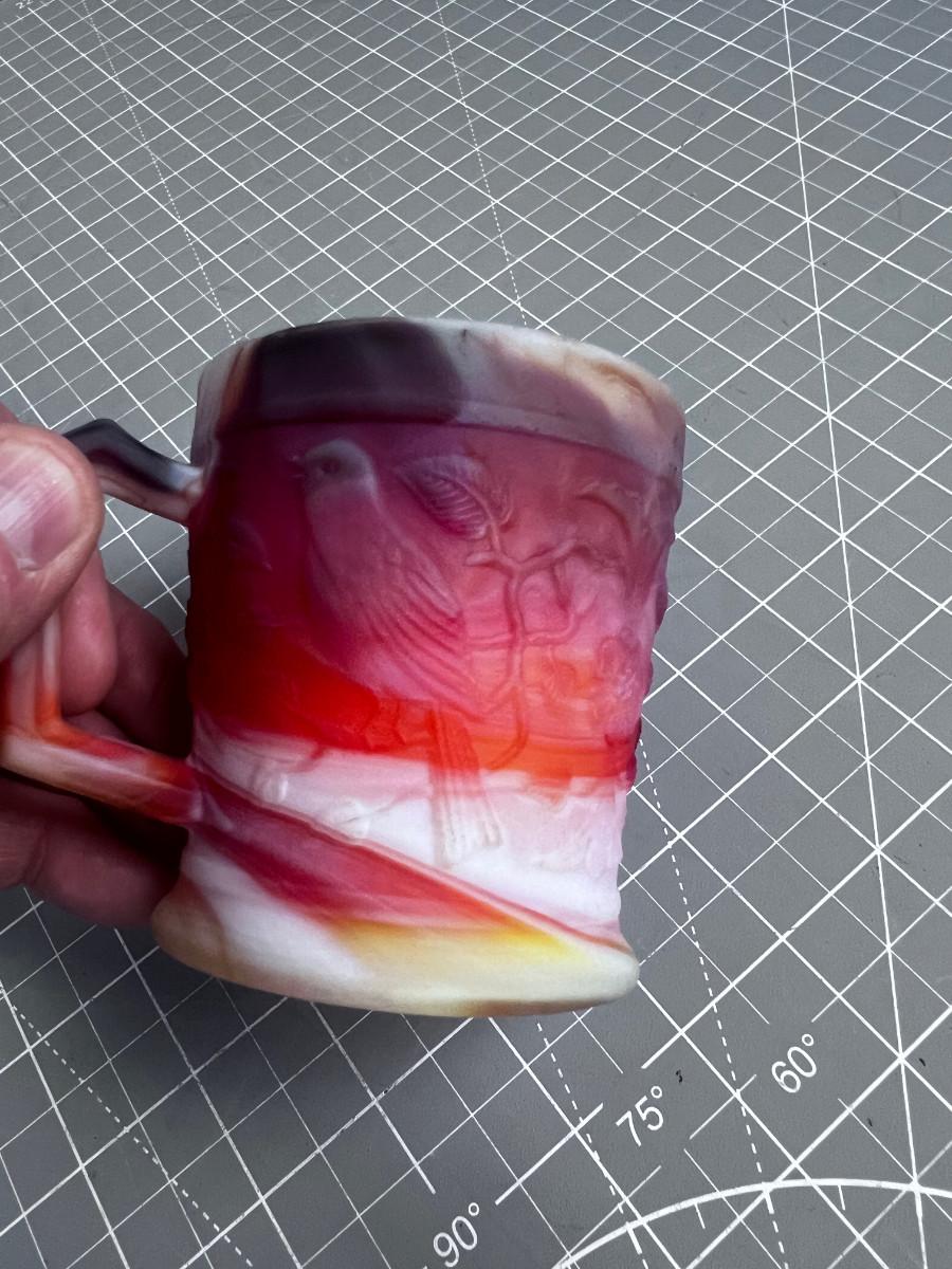 IMPERIAL Red & White SLAG Mug with Birds, RARE!