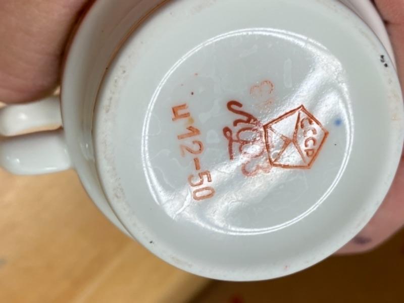 Lovely Soviet era porcelain from the Imperial Factory of Lomonosov, featuring deep red and gilt decoration . Cups are 3” tall and wide, saucers 4.75” . MINT