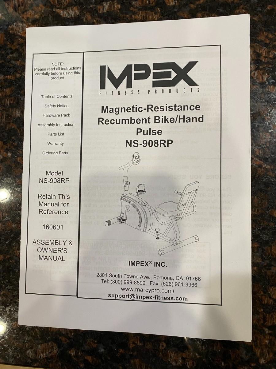 IMPEX magnetic resistance, recumbent stationary bike.