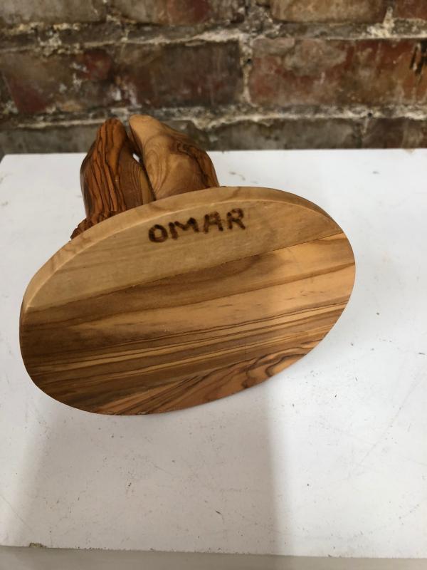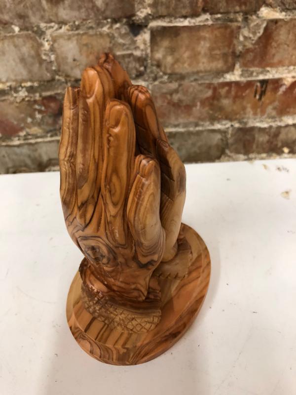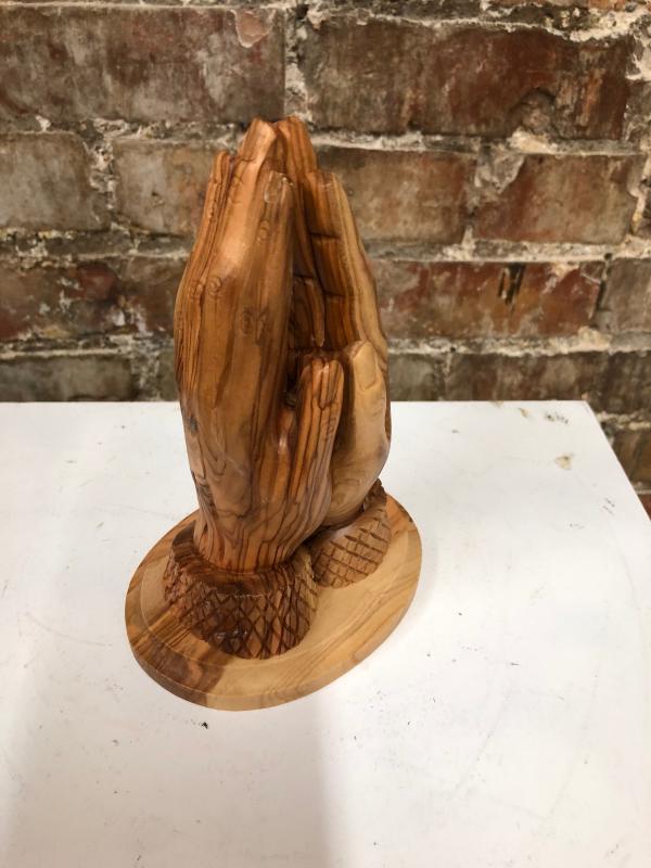 Signed by the artist here are a pair of 7" tall hand carved olive wood Praying hands from Bethlehem..the Holy land....