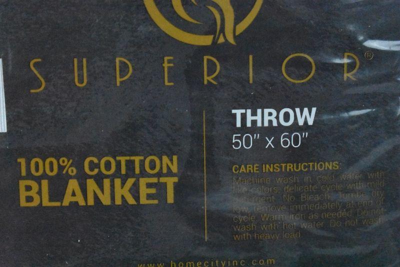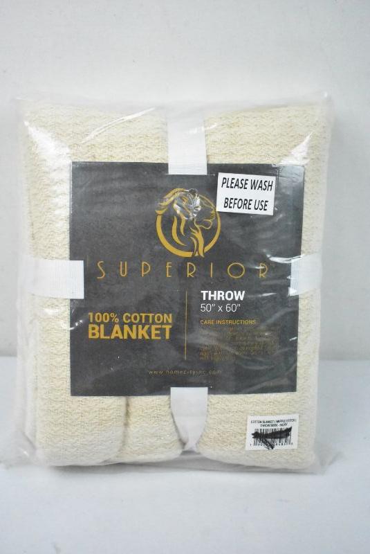 Impressions Solid Woven Cotton Throw Blanket, Ivory 50" x 60" - New