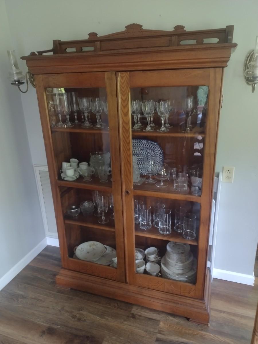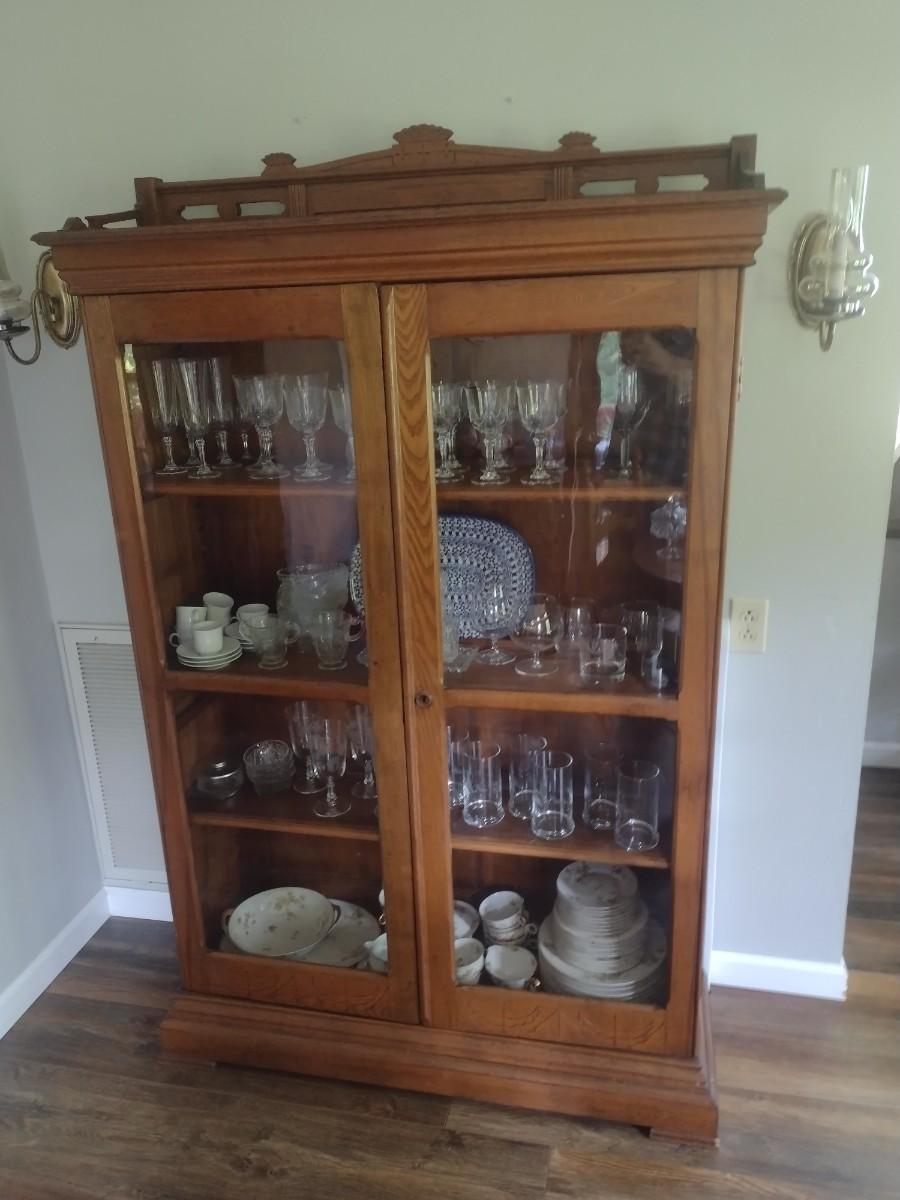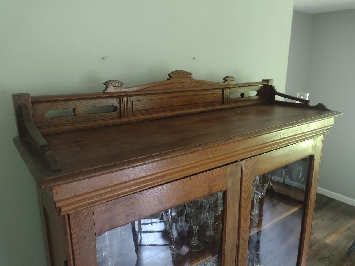 Antique Eastlake Solid Oak Double Door Dish Cupboard (No Contents)