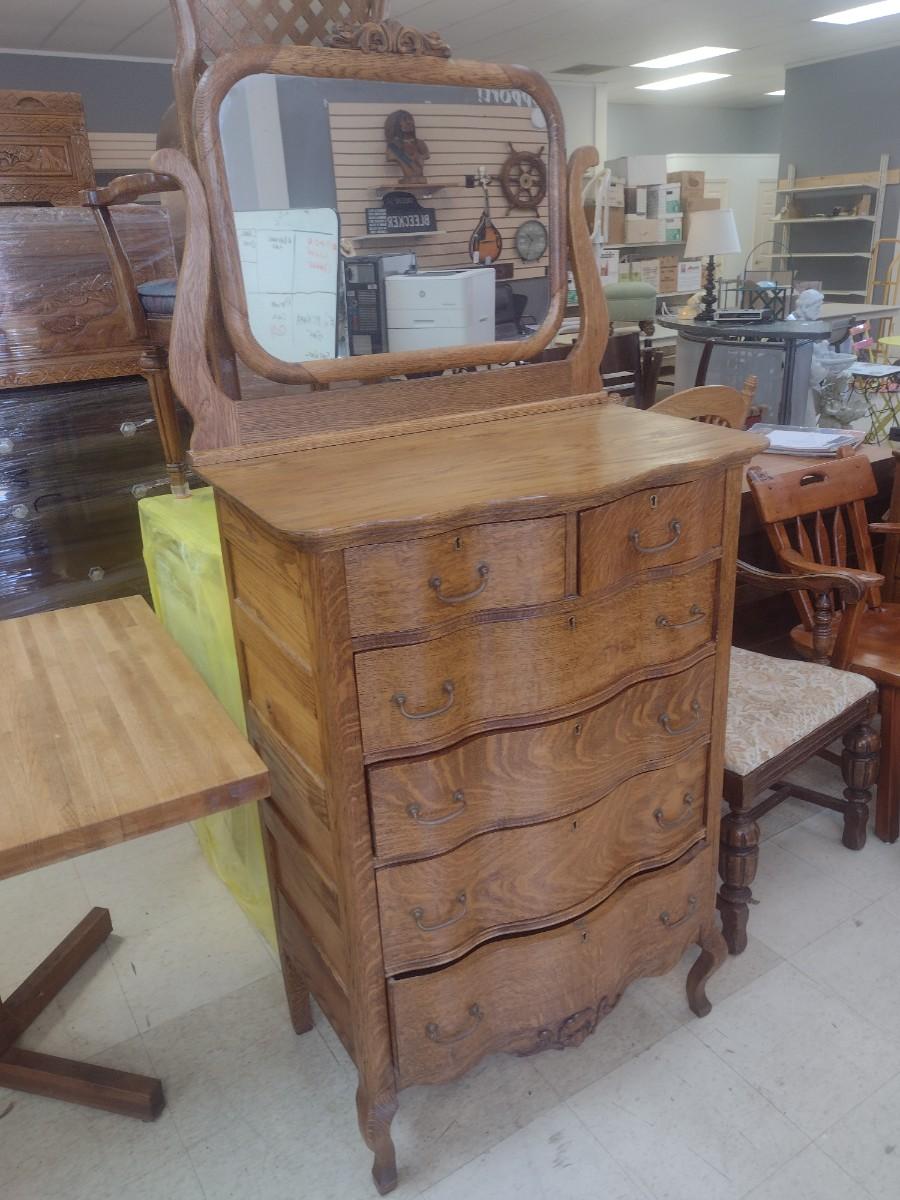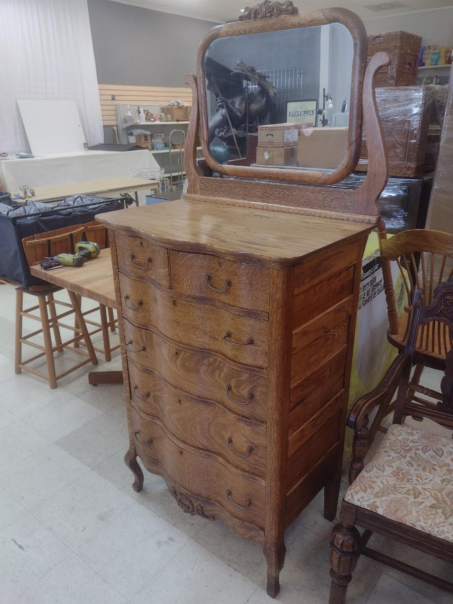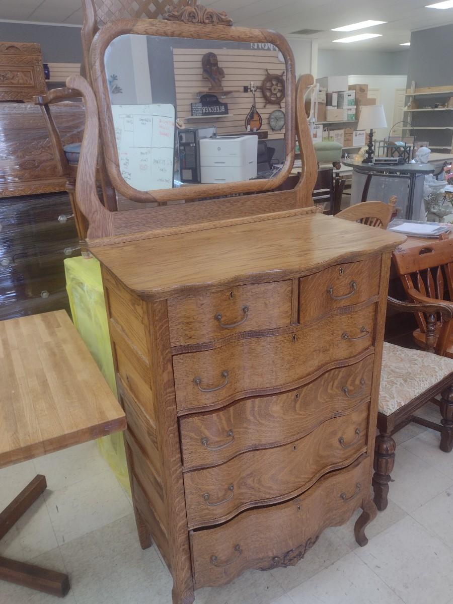 Impressive Antique Oak Two Over Four Dresser with Harness Swivel Mirror