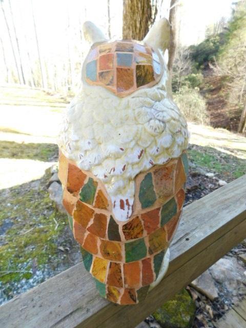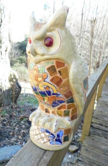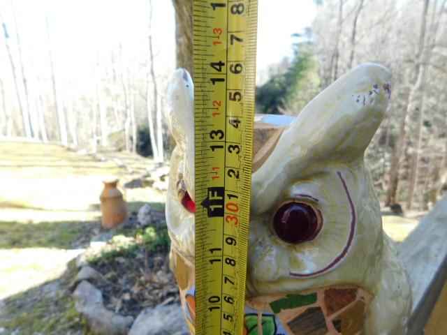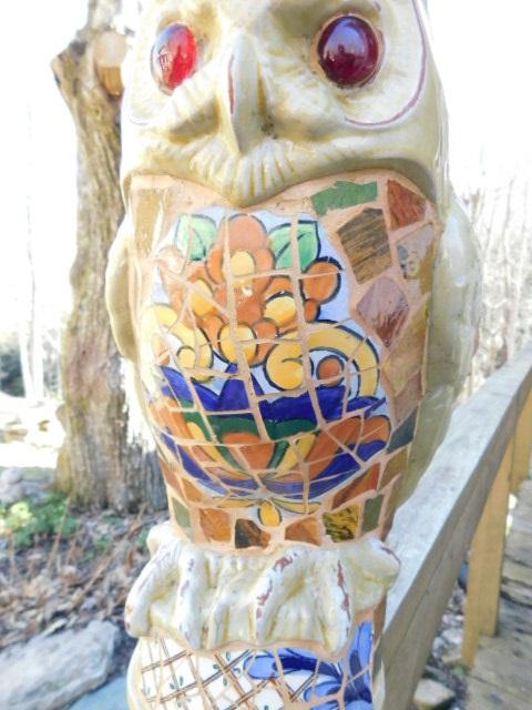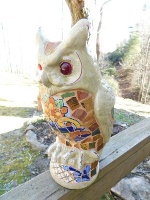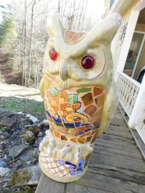 Impressive Heavy Pottery Owl with Mosaic Tile Accents 14"
