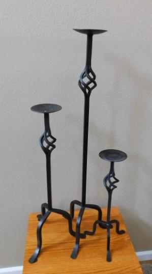 Impressive Heavy Wrought Iron Set of Candle Holders