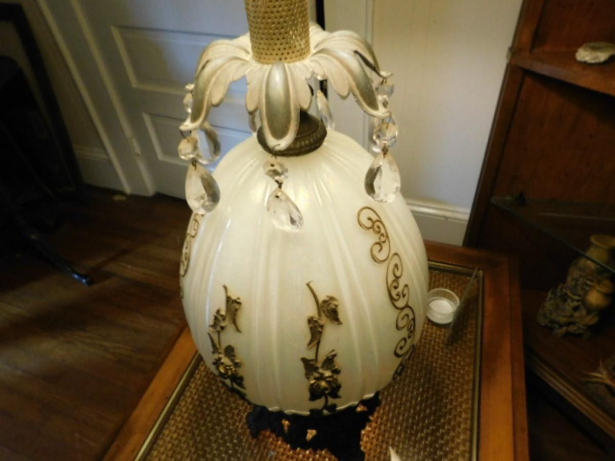 Impressive Hollywood Regency Table Lamp shade is worn and will need to be replaced