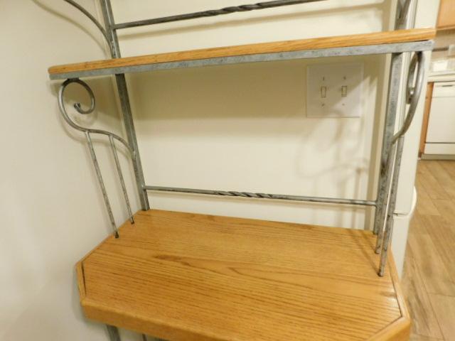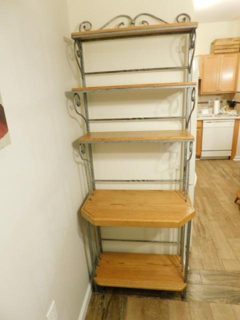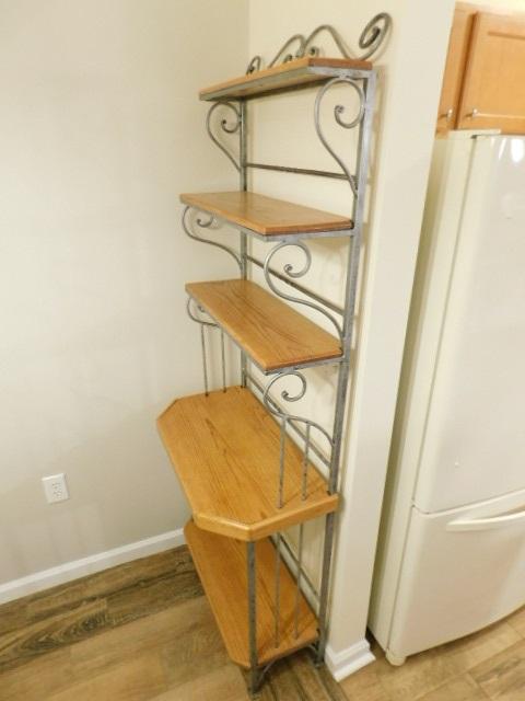 Impressive Metal Iron Baker's Rack with Solid Wood Shelves no stairs to the parking area