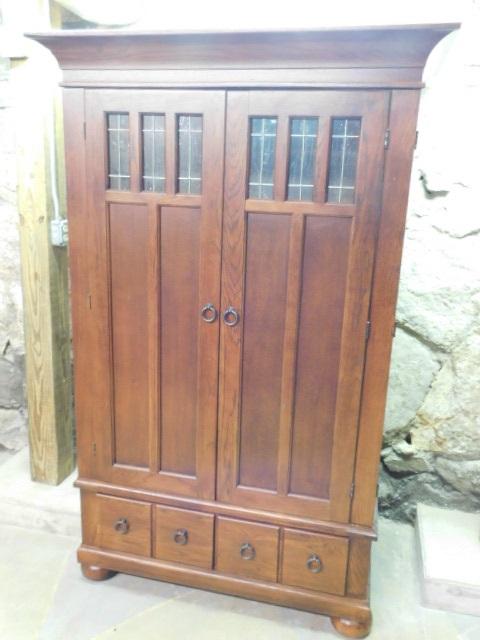 Impressive Oak Arts and Crafts Armoire Entertainment Cabinet 44"x25"x77"