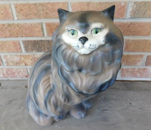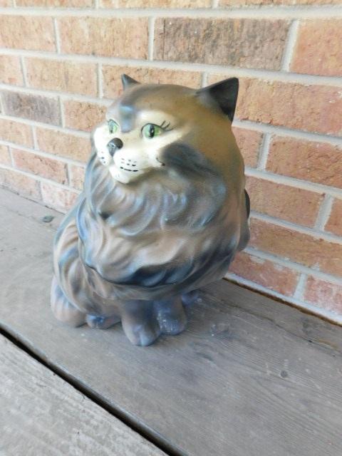 Impressive Pottery Cat Hand Painted Large 13"x12" Unmarked