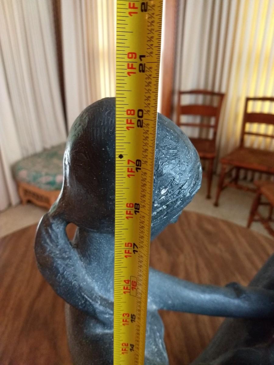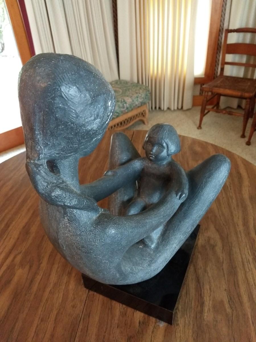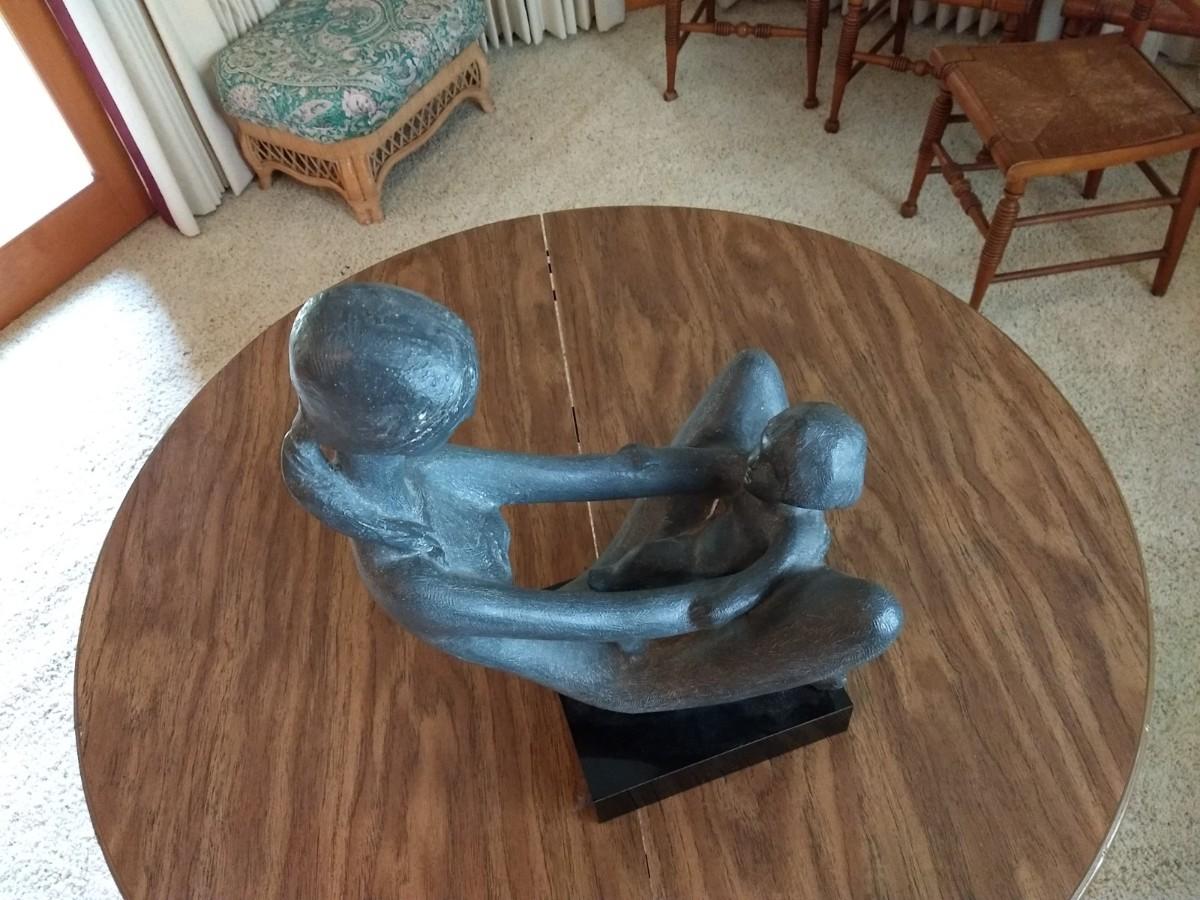 Impressive Sculpture of Mother and Daughter on Wood Base