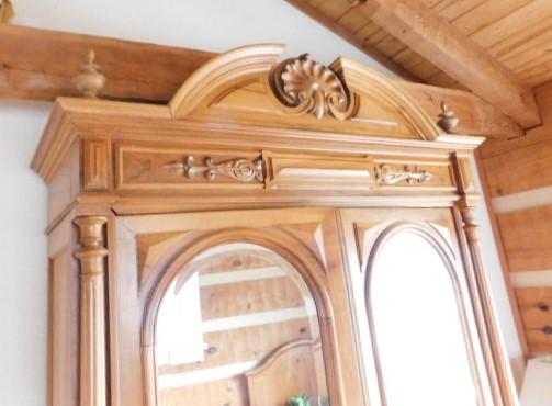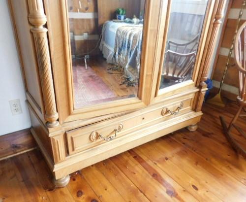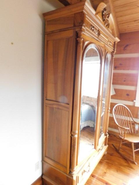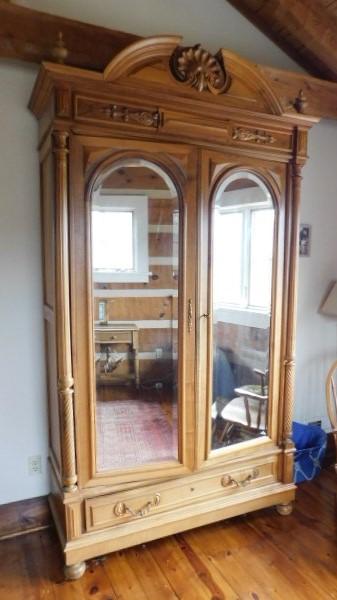 Impressive Solid Wood Double Mirrored Door Armoire 53"x20"x85" upstairs item. Bring tools to take apart if needed