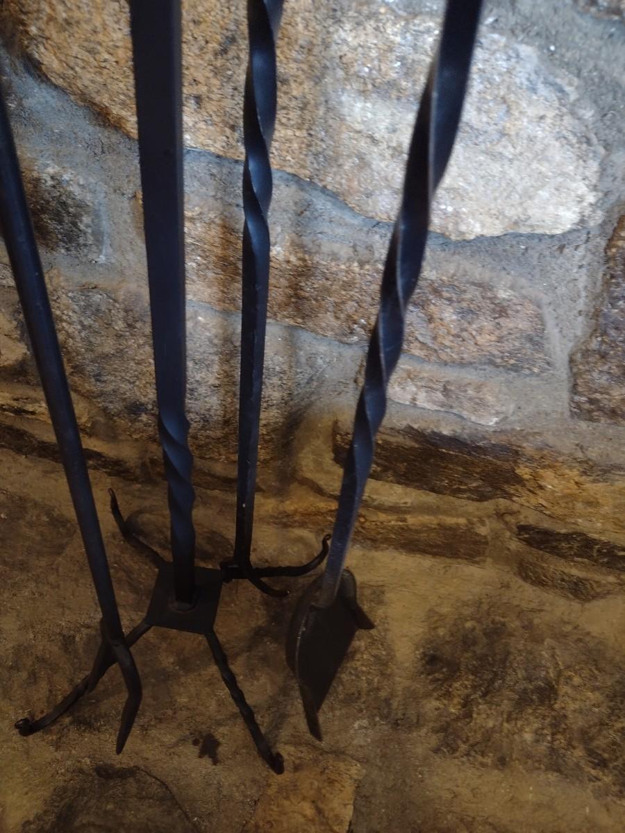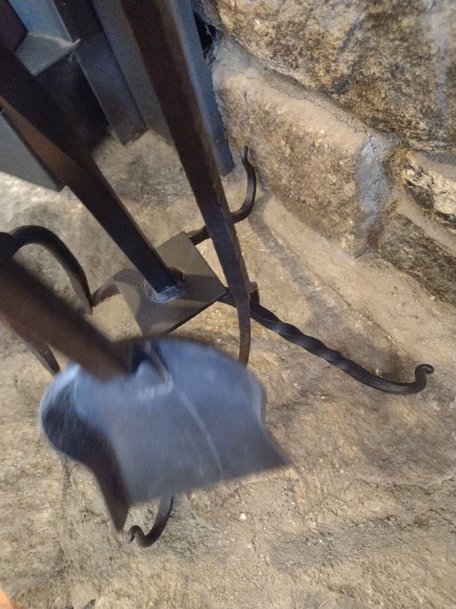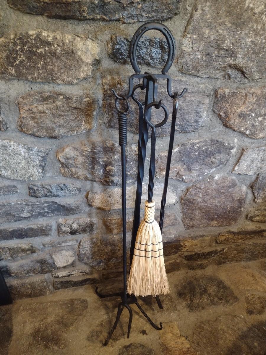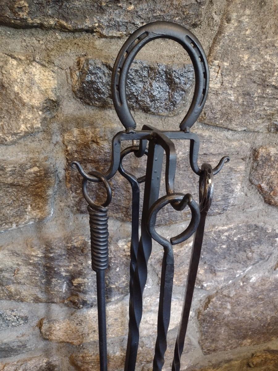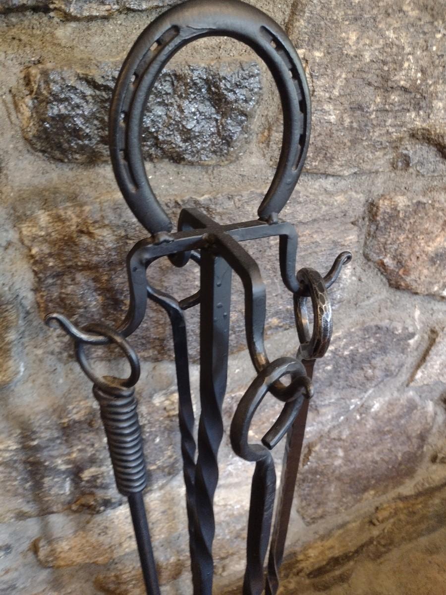 Impressive Thick and Heavy Wrought Iron Fireplace Tool Set Hand Crafted by Local Blacksmith Artist