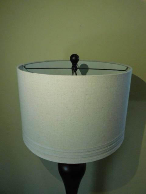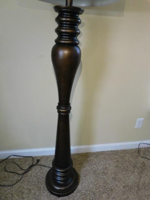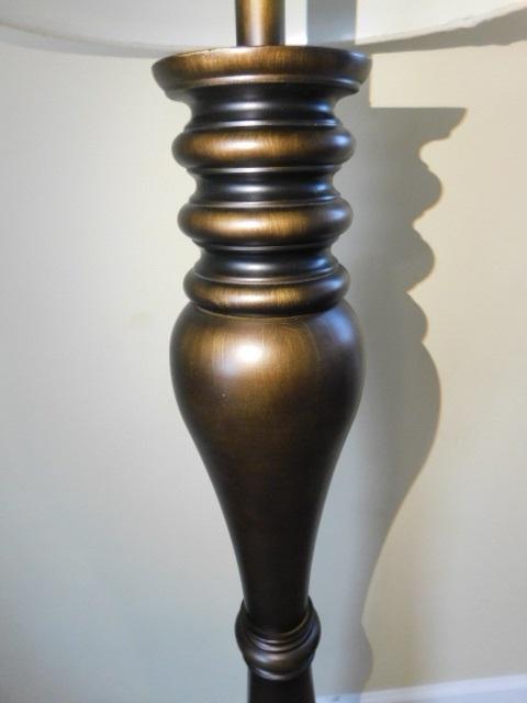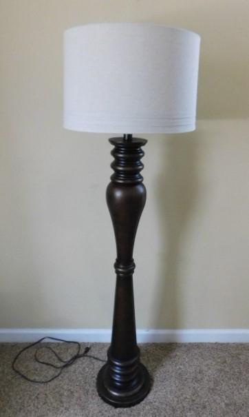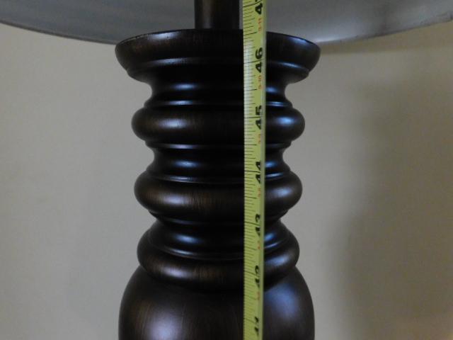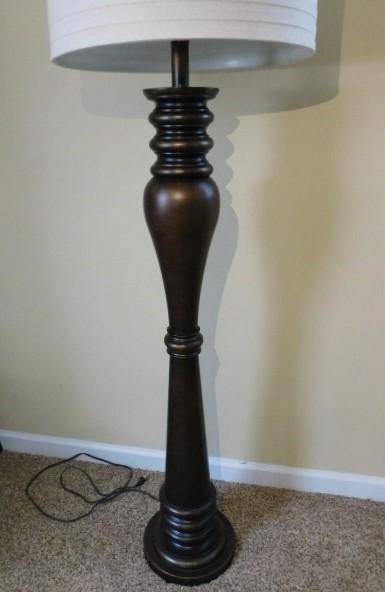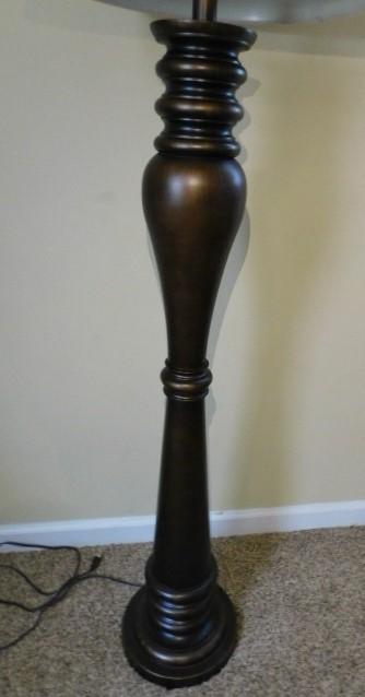Imressive Heavy Reisn 'Hand Turned Wood' Floor Lamp 60" is designed to have the appearance of a hand turned wood creation. This has a great look and is dark brown/bronze in the light.