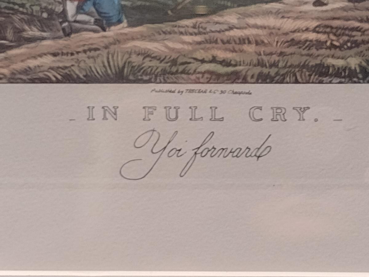 'In Full Cry- Yoi Forward' The Pytchley Hunt- Equestrian Fox Hunt Print Framed Behind Glass. Approx 21 3/4" x 26 3/4".