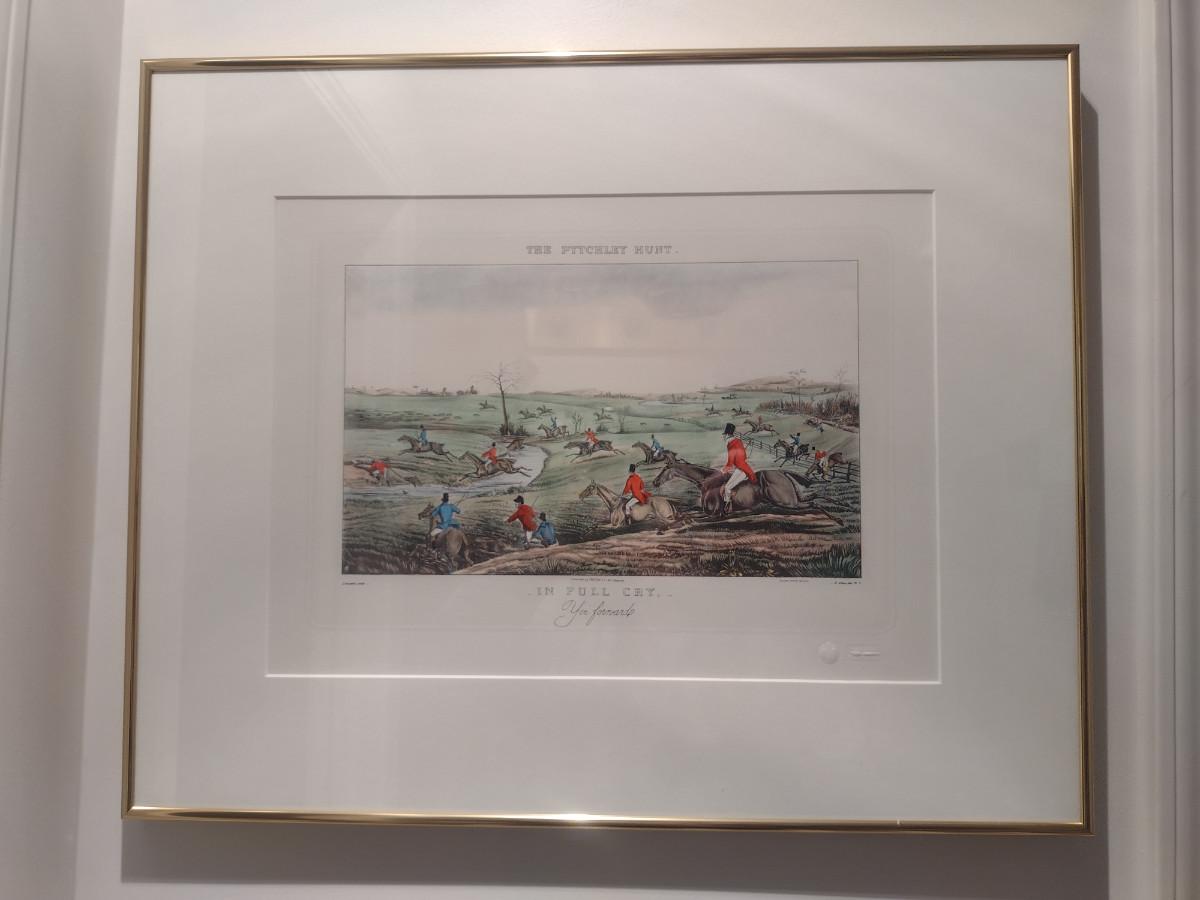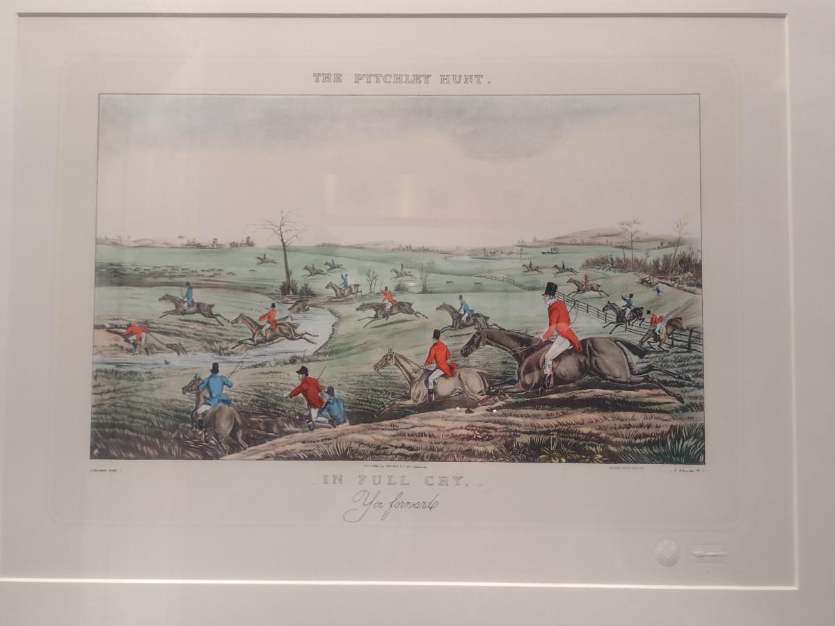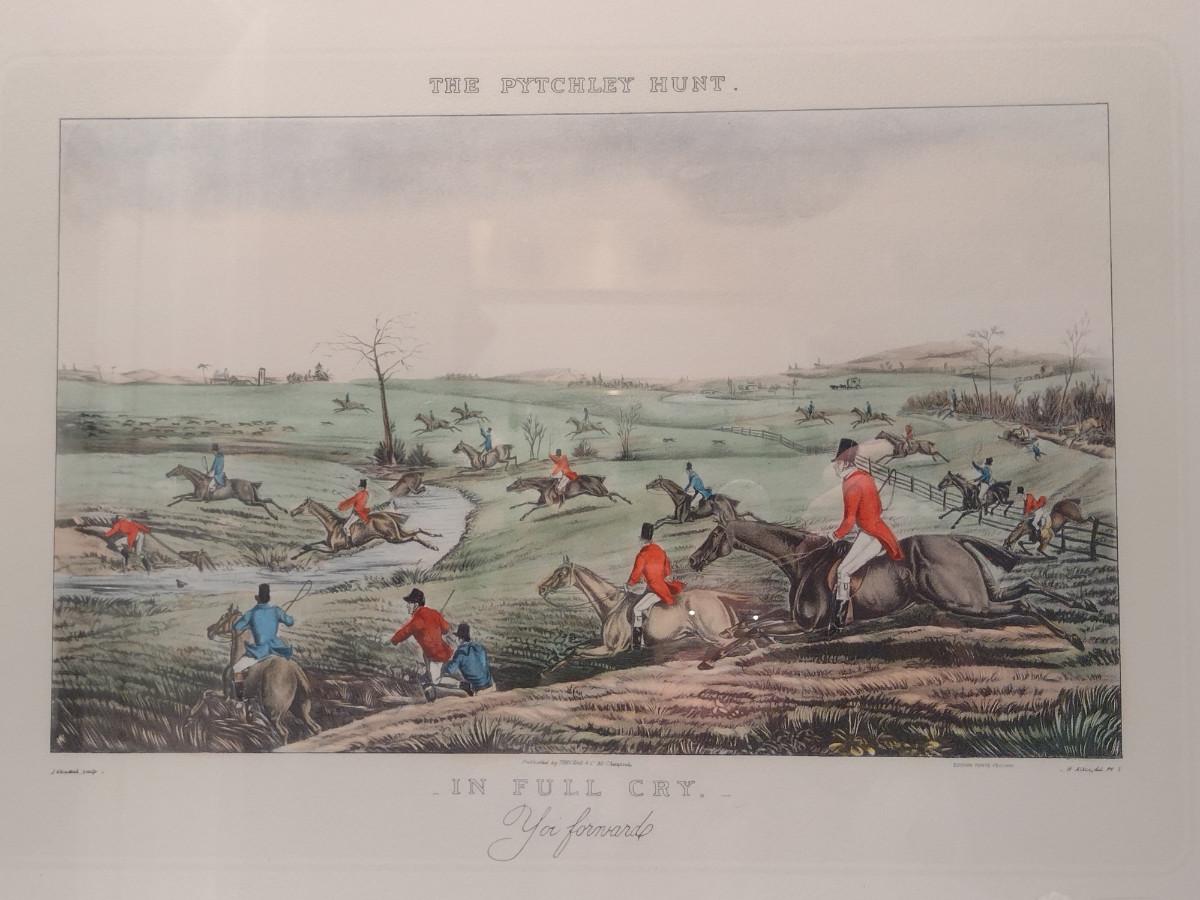 'In Full Cry- Yoi Forward' The Pytchley Hunt- Equestrian Fox Hunt Print Framed Behind Glass