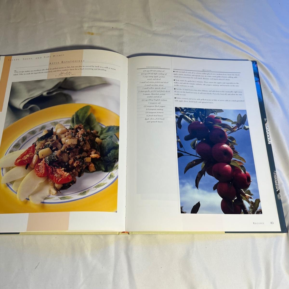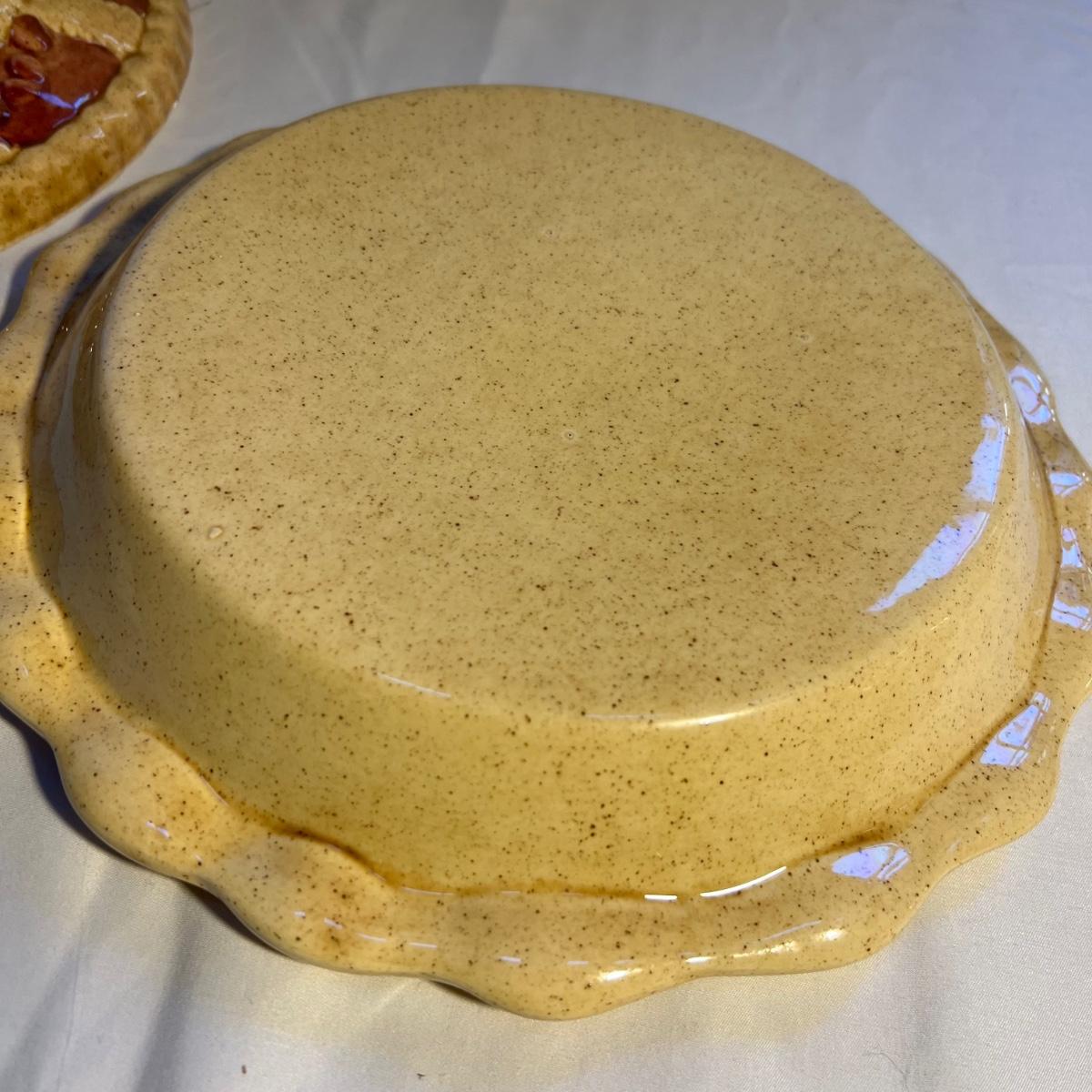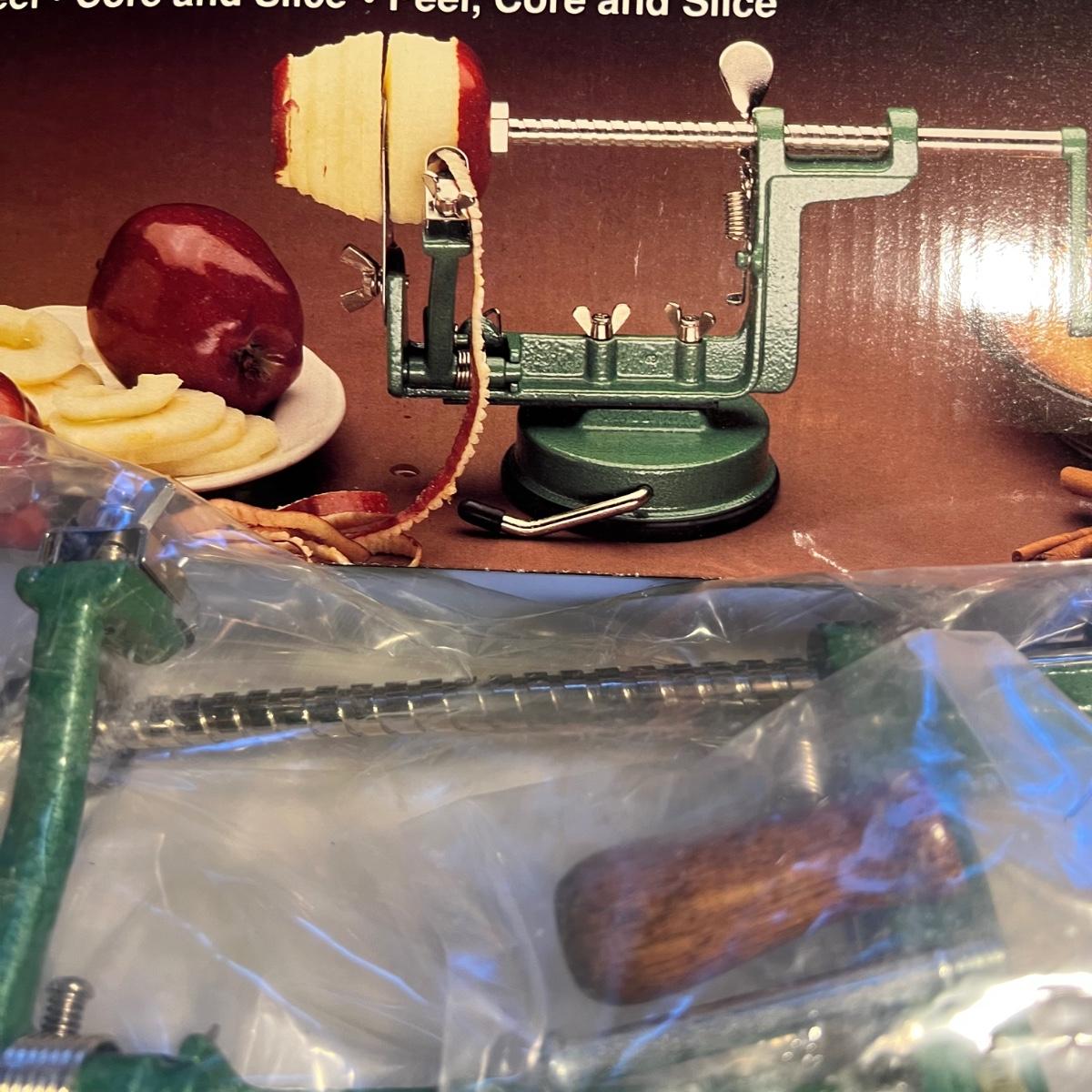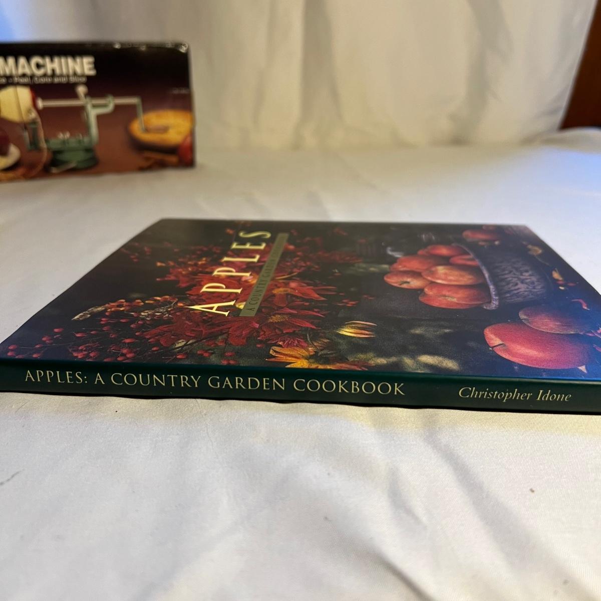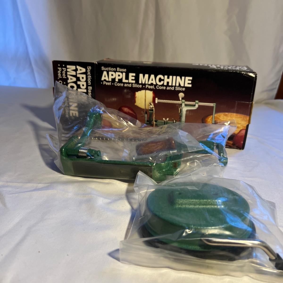 This lot is all about apples with cookbooks, a new in box apple machine and a sweet apple pie dish. Ceramic lidded dish measures 10.5”D x 5”H.