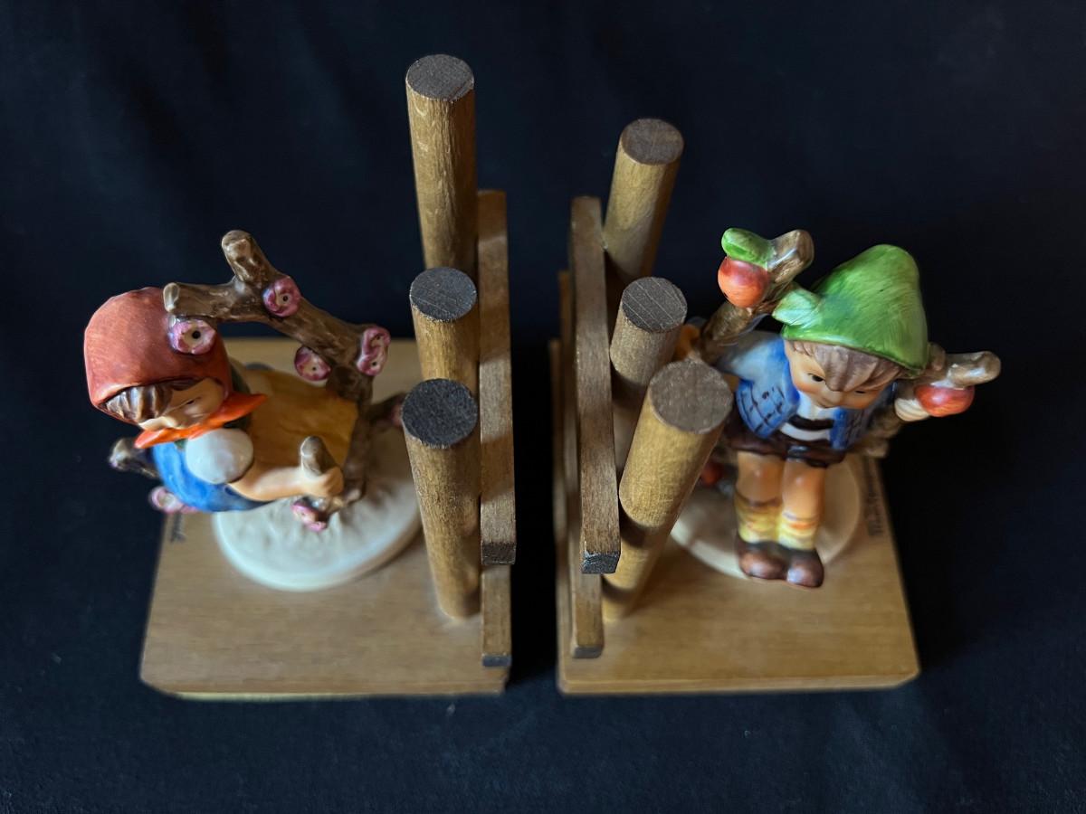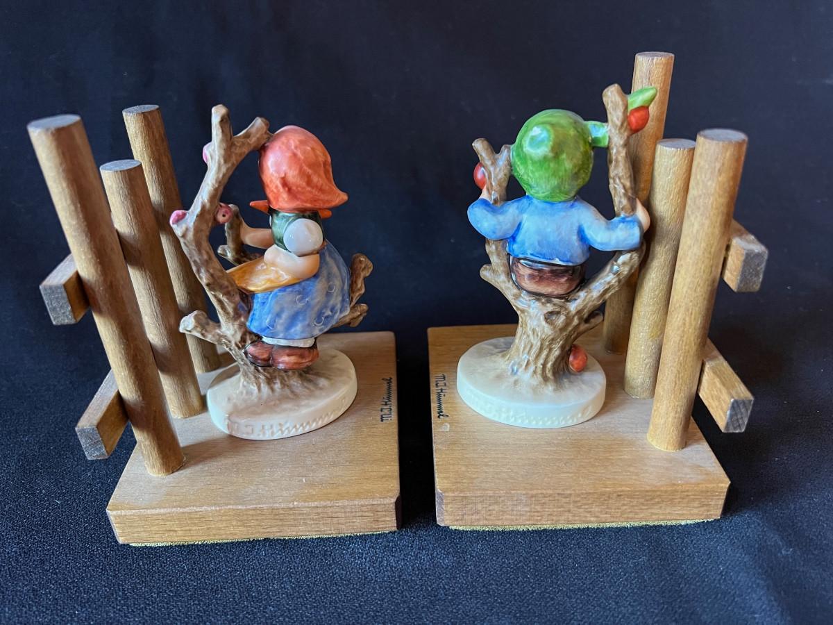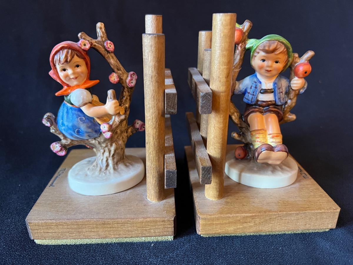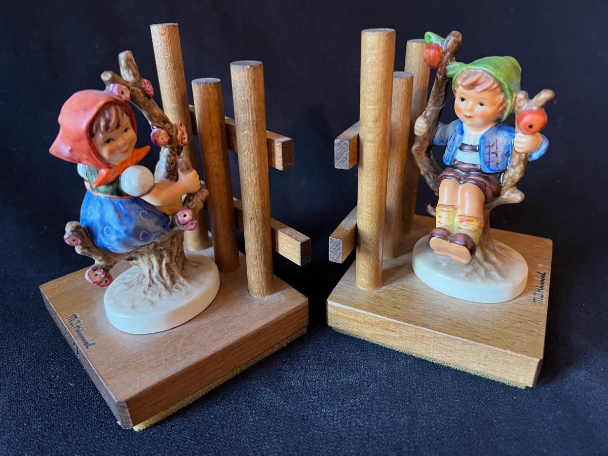 Vintage Hummel Bookends - Apple Tree Girl and Boy on Wood Base