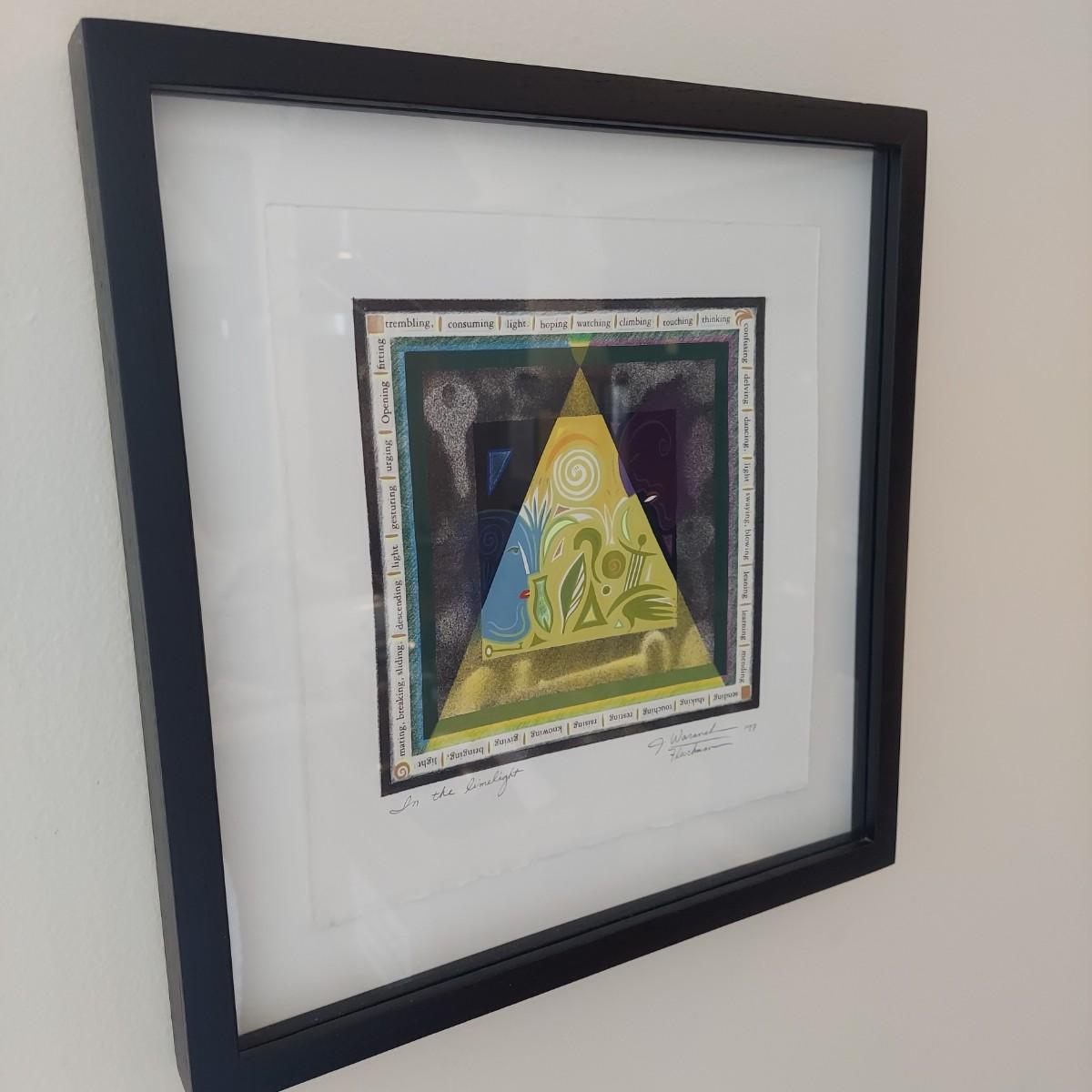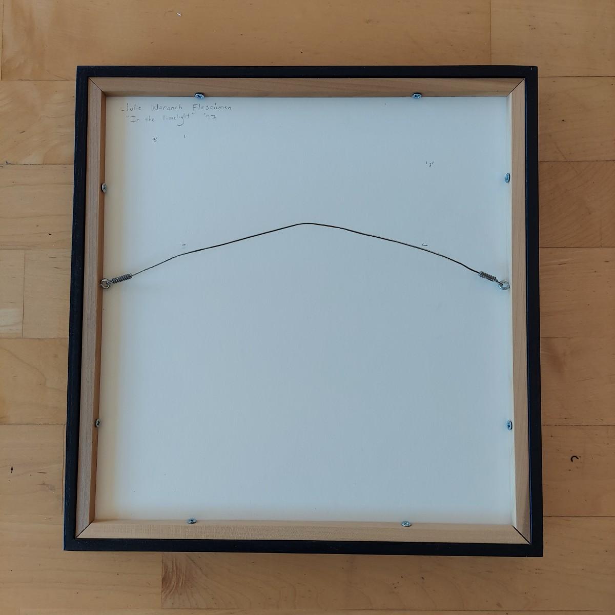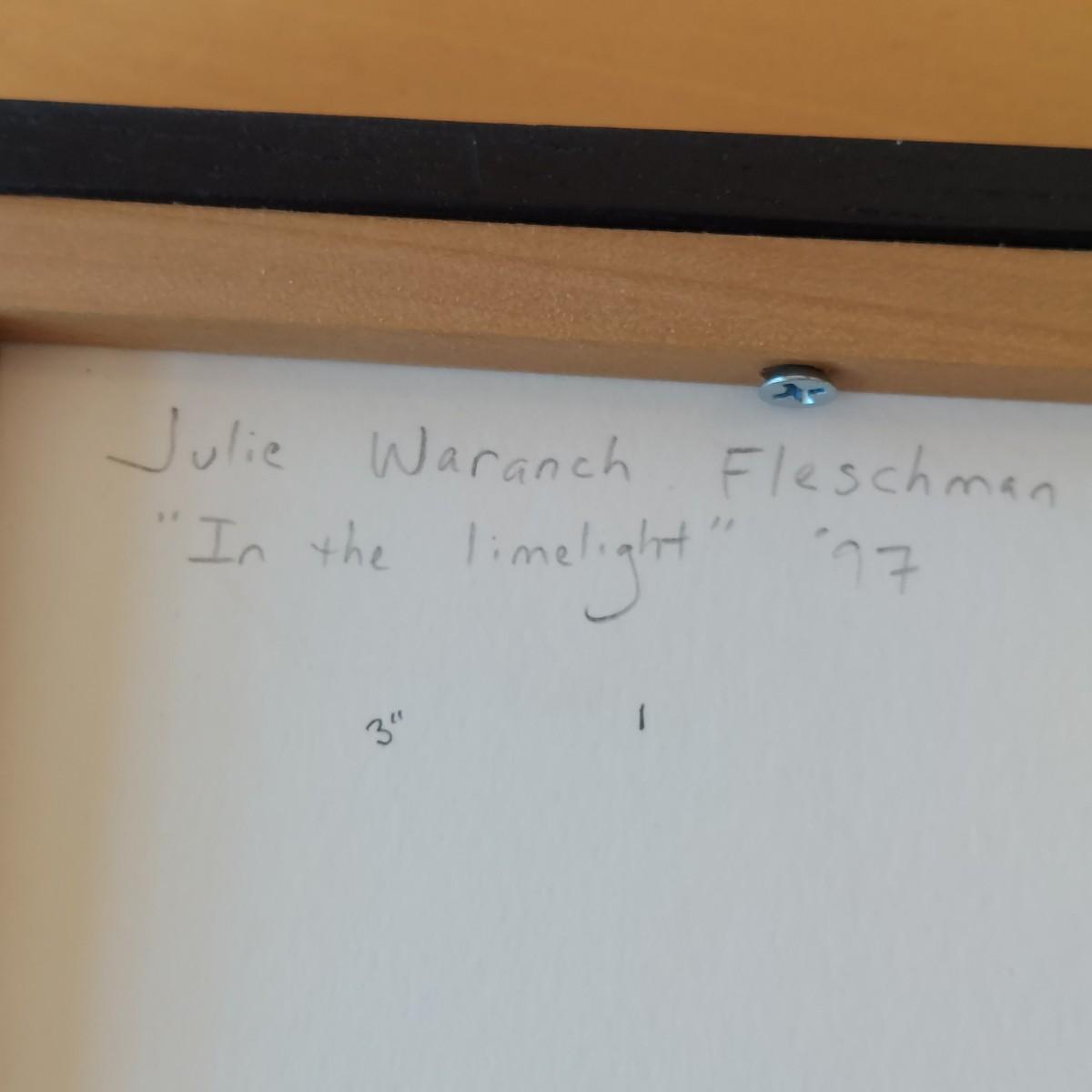 Piece appears to be a pencil signed and numbered print of “In the Limelight” by Julie Waranch Fleschman. Art is framed under glass in a floating, matt-free style. The black wooden frame measures 13"SQ. Please see photos for details. Shipping available
