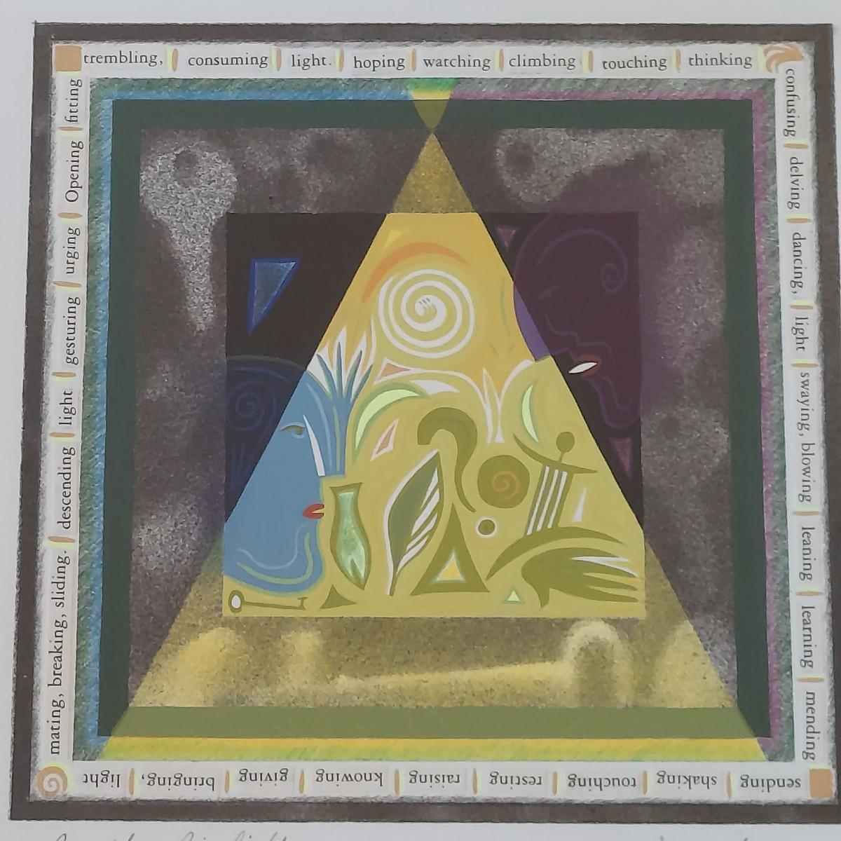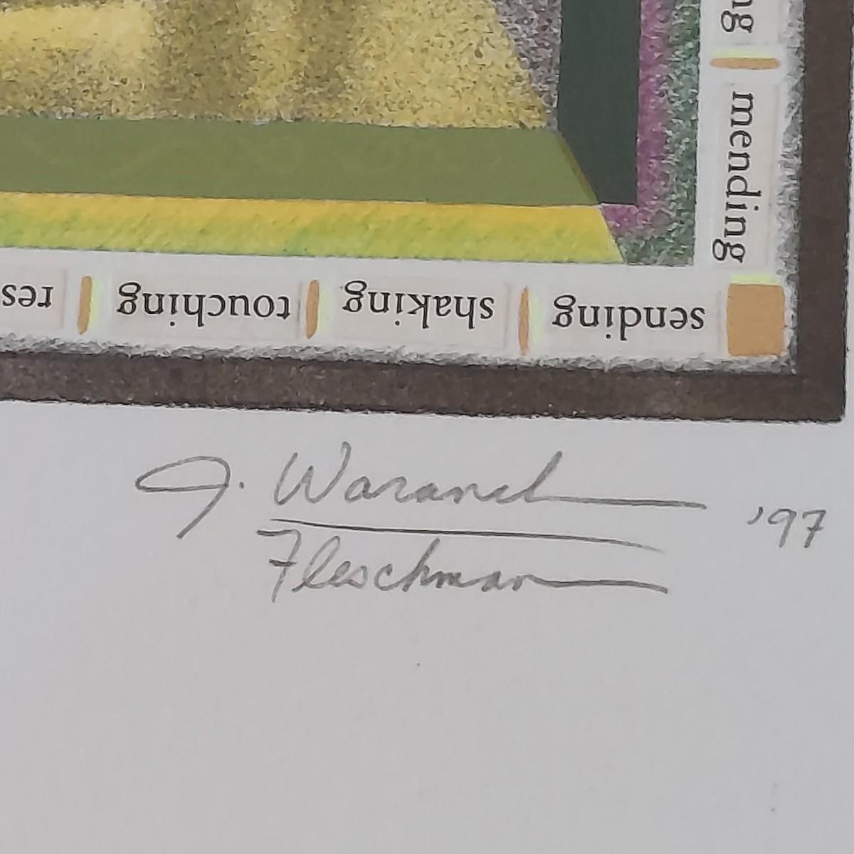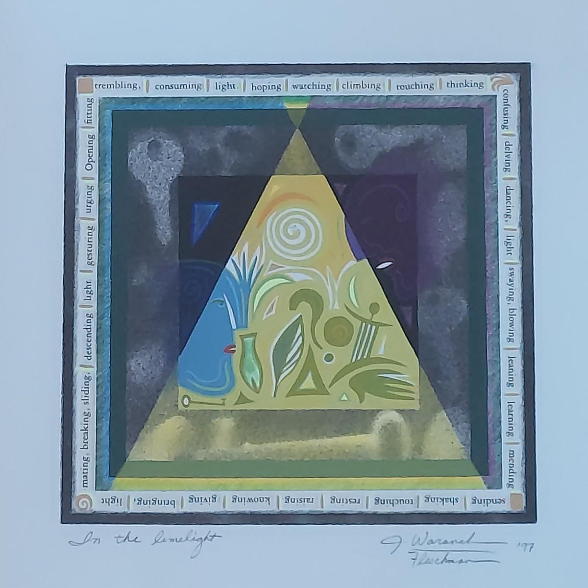 Piece appears to be a pencil signed and numbered print of “In the Limelight” by Julie Waranch Fleschman. Art is framed under glass in a floating, matt-free style. The black wooden frame measures 13"SQ. Please see photos for details. Shipping available
