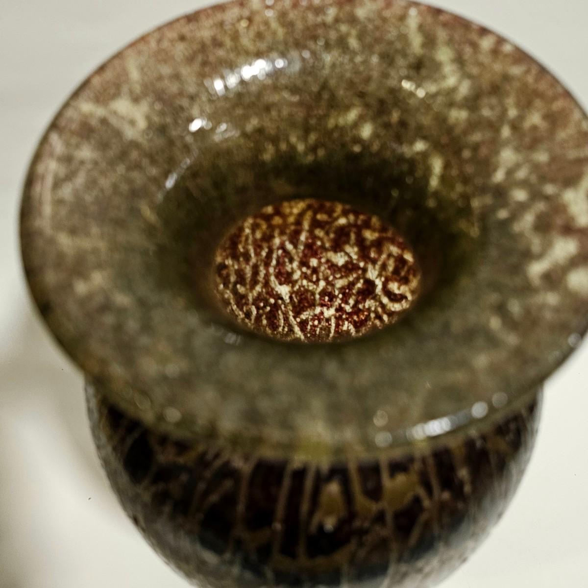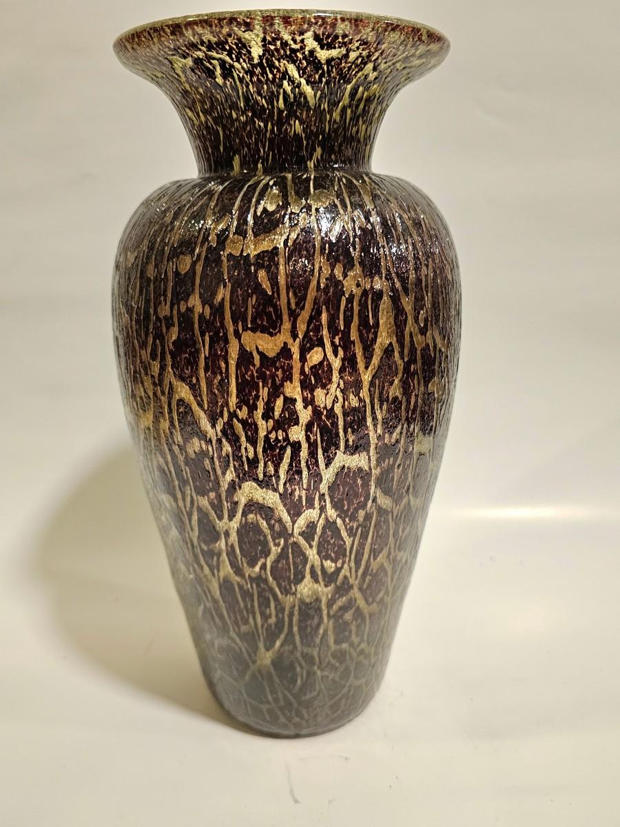 (In the Style of) Durand Black and Gold Crackle Glass Vase