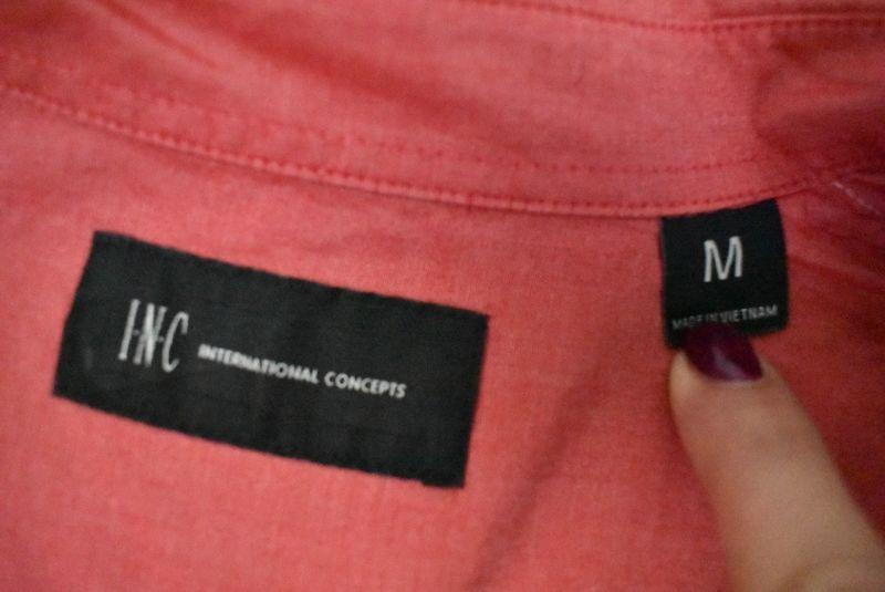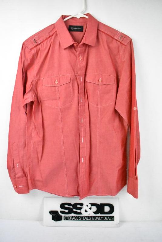 INC International Concepts Dress Shirt, Long Sleeve Button Down Size Medium, Red