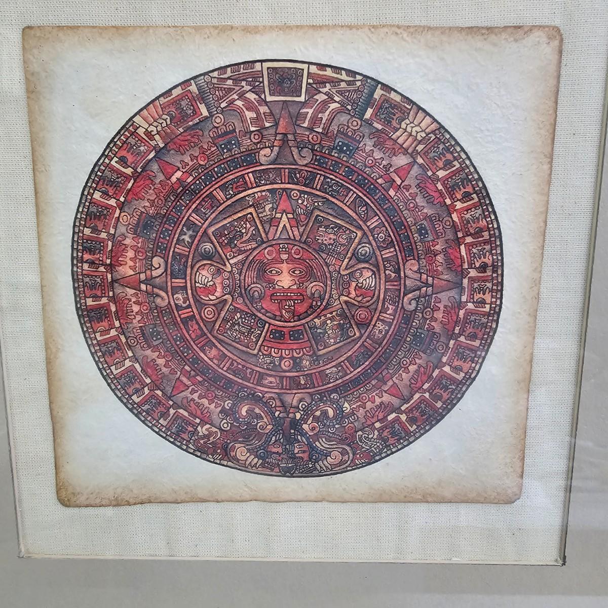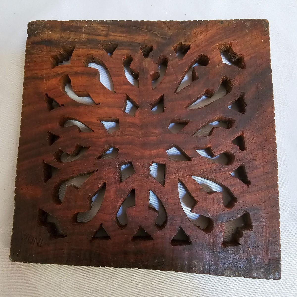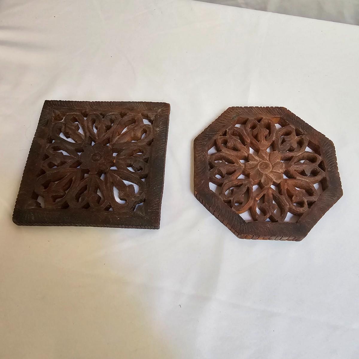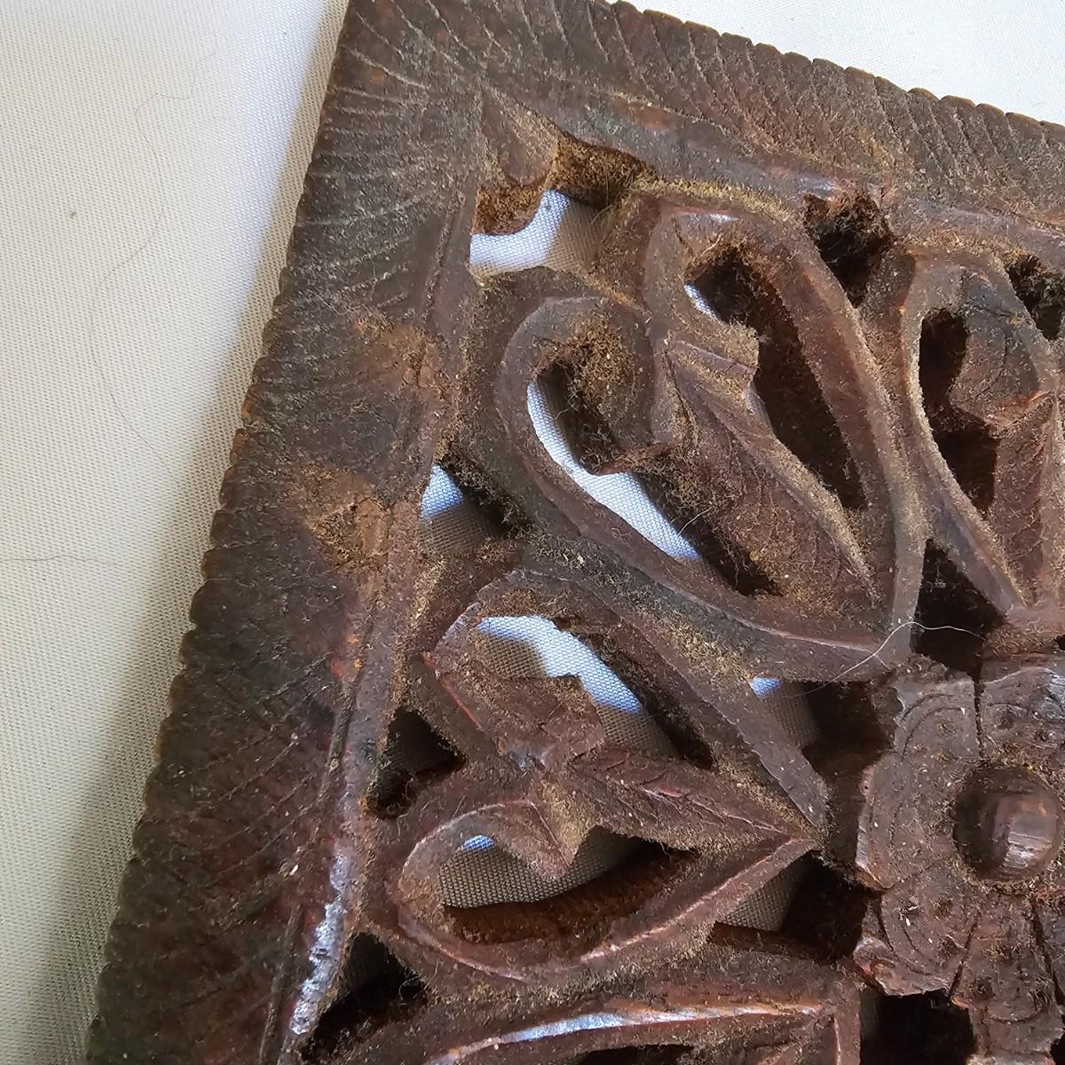 Wooden carved tray with bas-relief image in a South American style. Tray measures 20" x 10.5" x 2"H, has one loose handle. Framed double images appear to be hand painted symbolic wheels on linen weave type background. This piece is 10" x 20". Two carved wooden plate rests are approximately 5"square each. See photos for details. Shipping available. Shipping can be costly. We suggest contacting our preferred local shipping provider, Postage Express, with dimensions and getting an estimate before bidding: (828) 225-9250 or shipping@postageexpressnc.com.