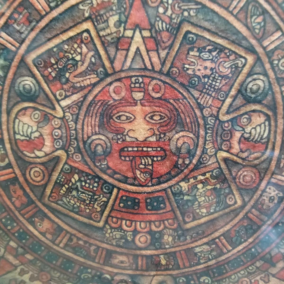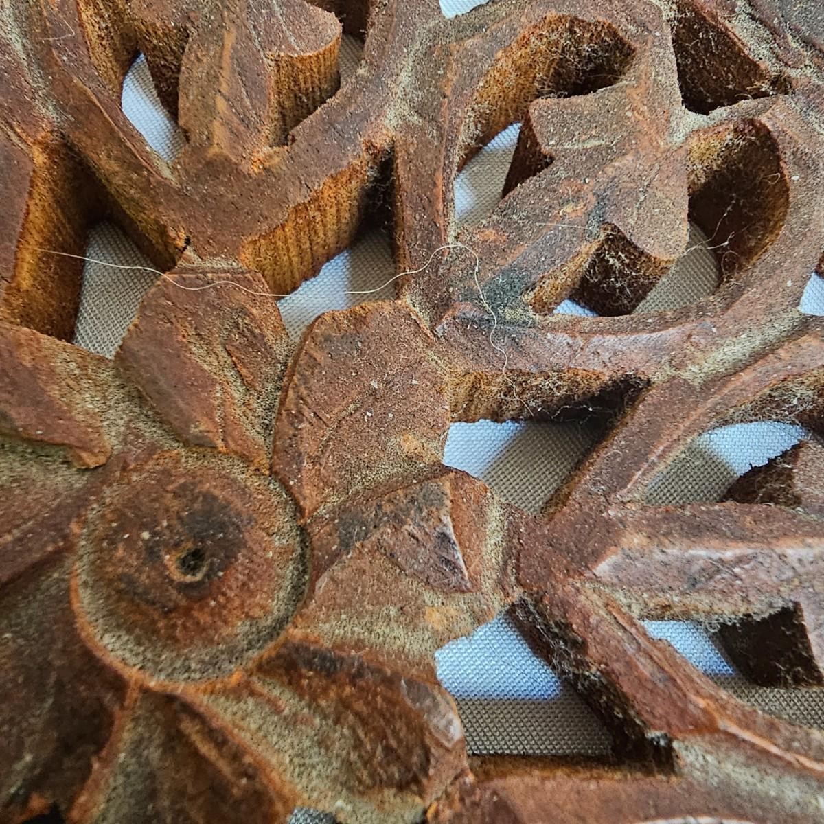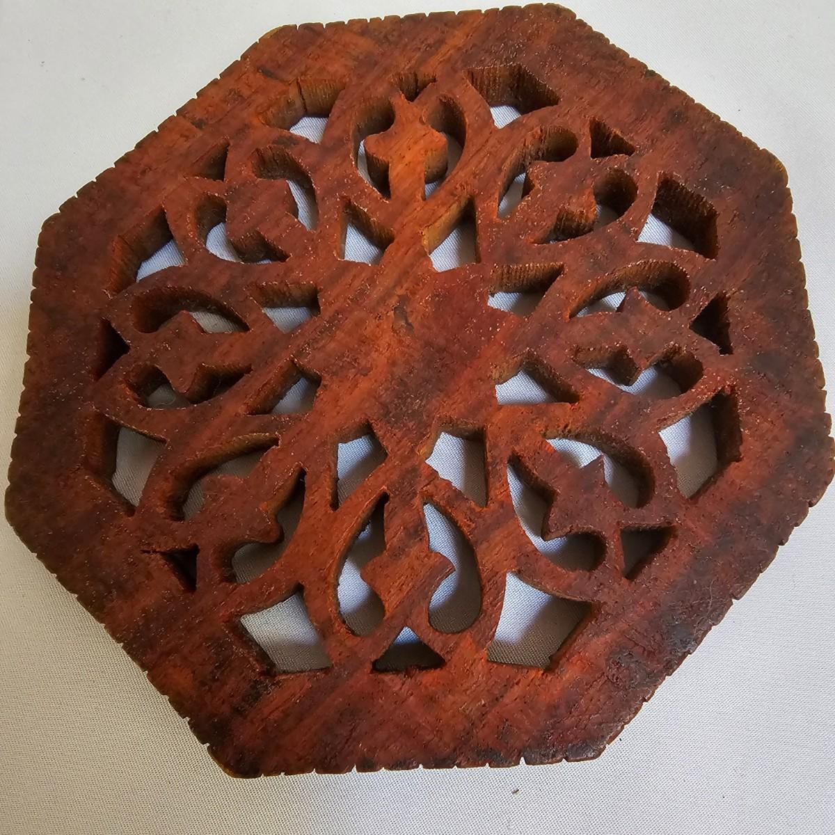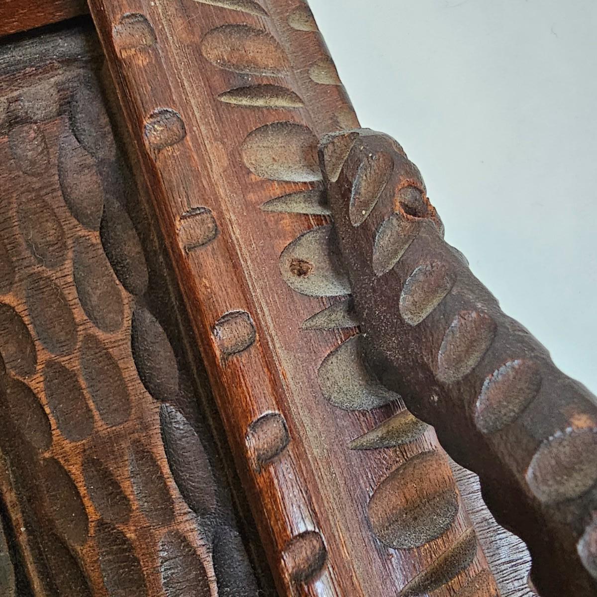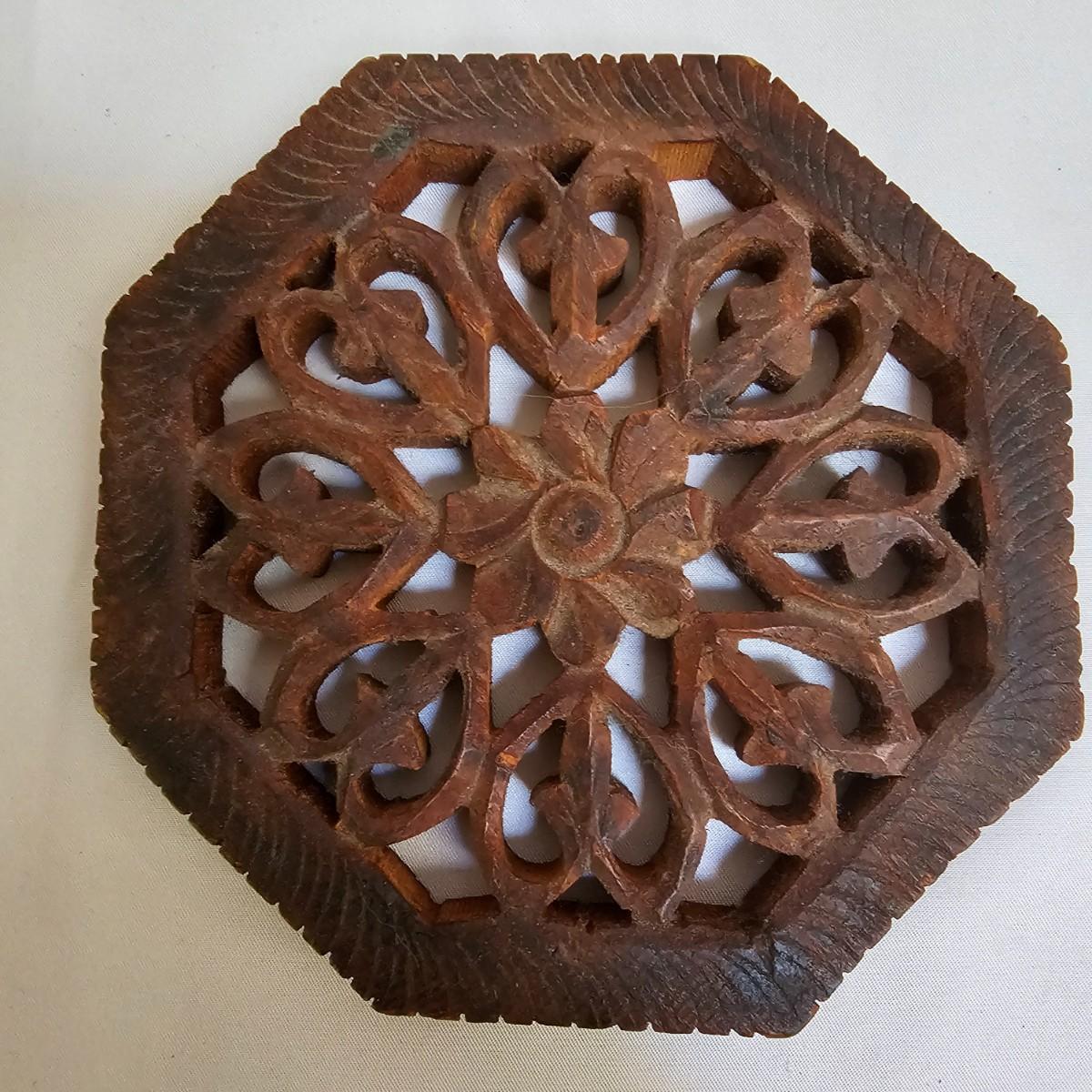 Wooden carved tray with bas-relief image in a South American style. Tray measures 20" x 10.5" x 2"H, has one loose handle. Framed double images appear to be hand painted symbolic wheels on linen weave type background. This piece is 10" x 20". Two carved wooden plate rests are approximately 5"square each. See photos for details. Shipping available. Shipping can be costly. We suggest contacting our preferred local shipping provider, Postage Express, with dimensions and getting an estimate before bidding: (828) 225-9250 or shipping@postageexpressnc.com.