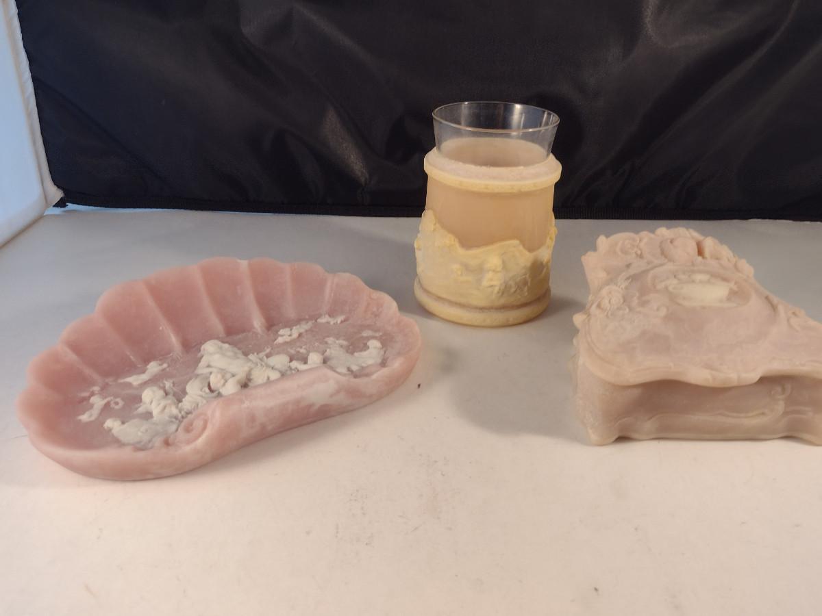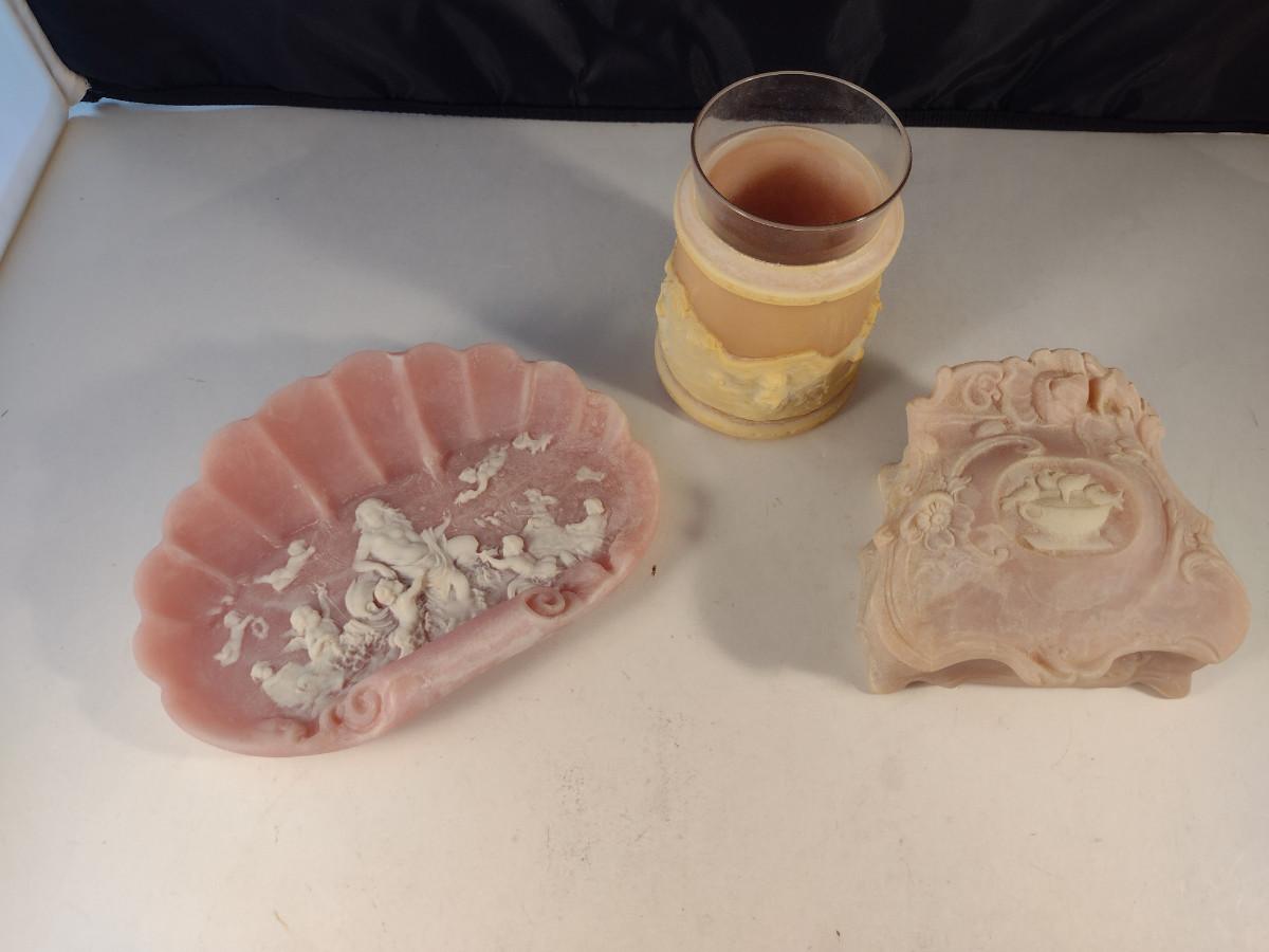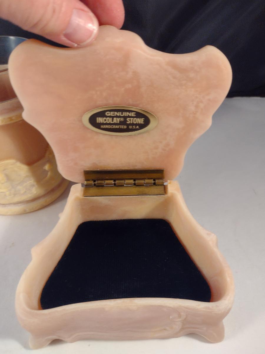 Incolay Stone Dresser Set- Trinket Dish, Jewelry Box, and Vase