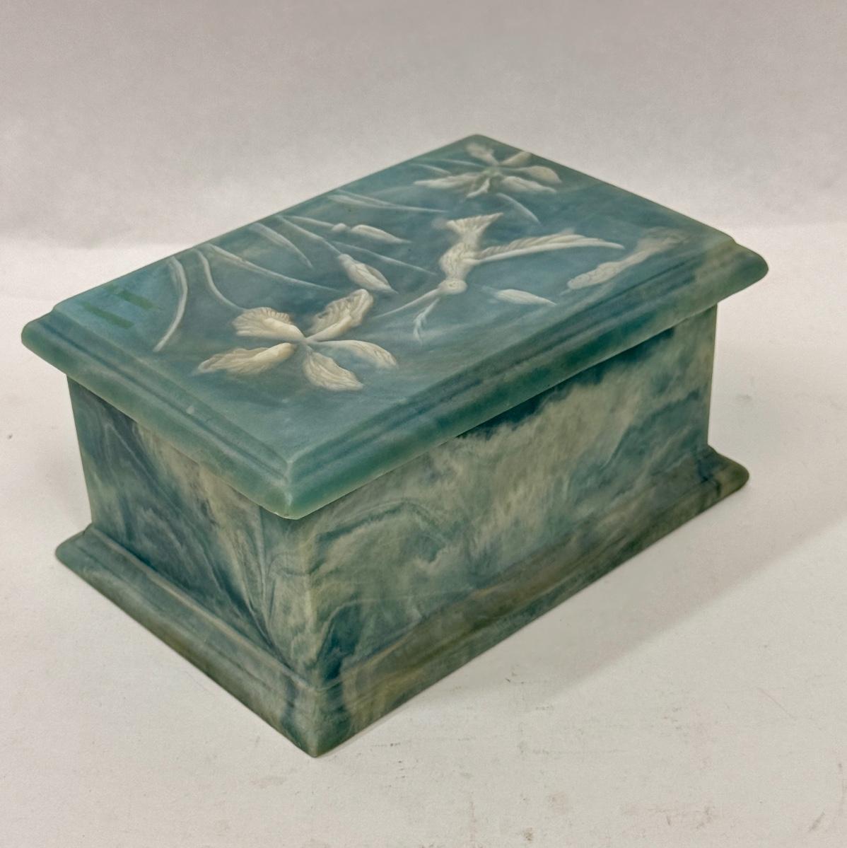 Incolay Stone Hummingbird Keepsake or Jewelry Box turquoise color
