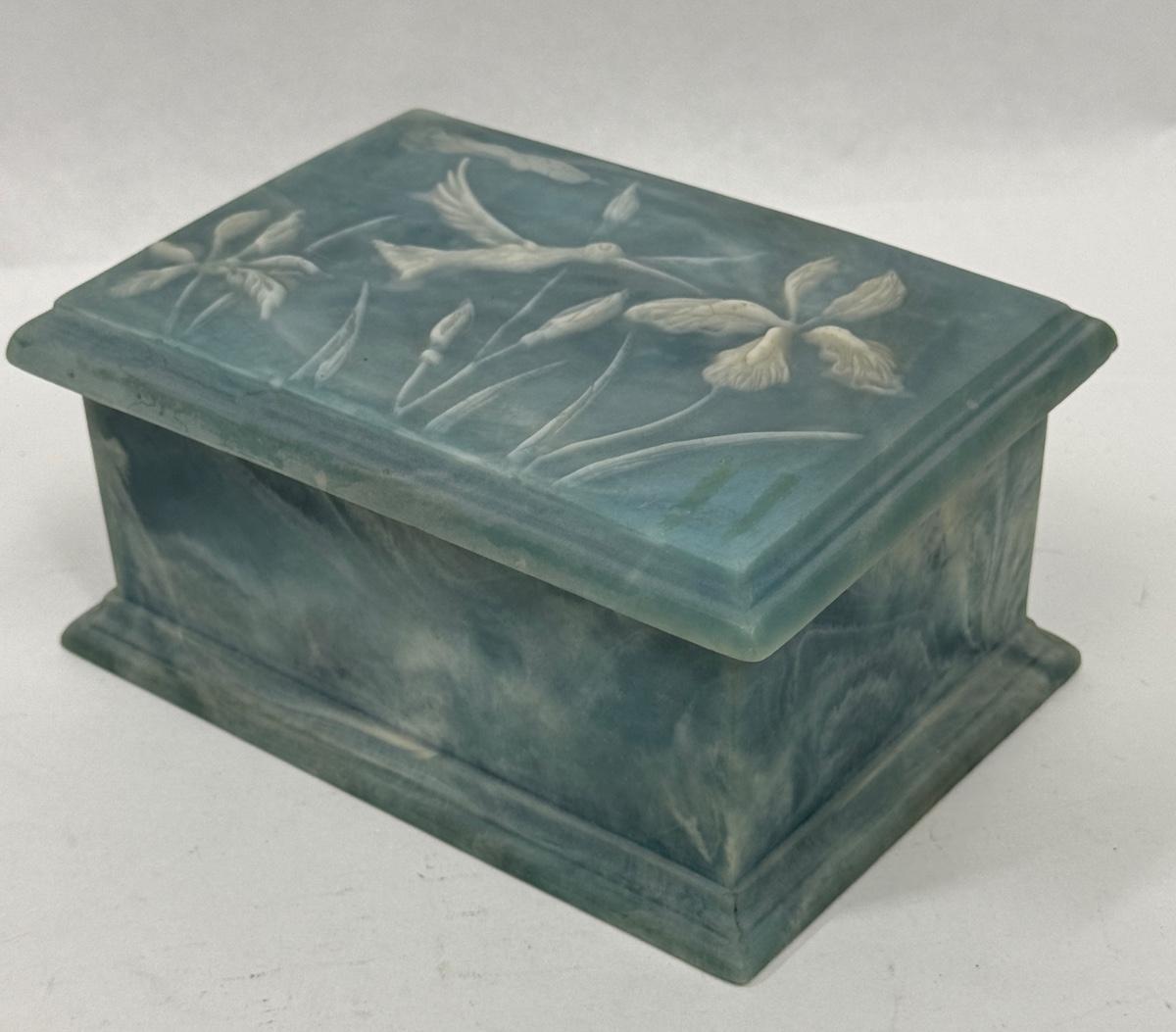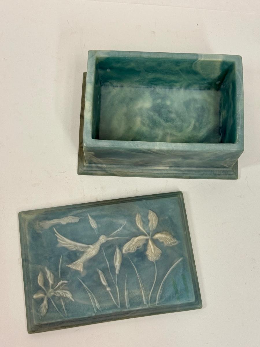Incolay Stone Hummingbird Keepsake or Jewelry Box turquoise color