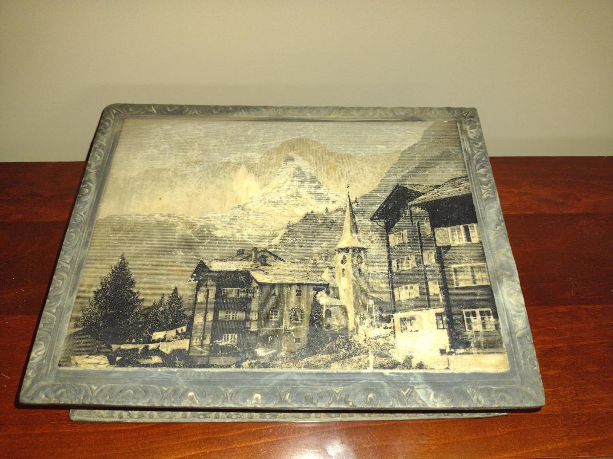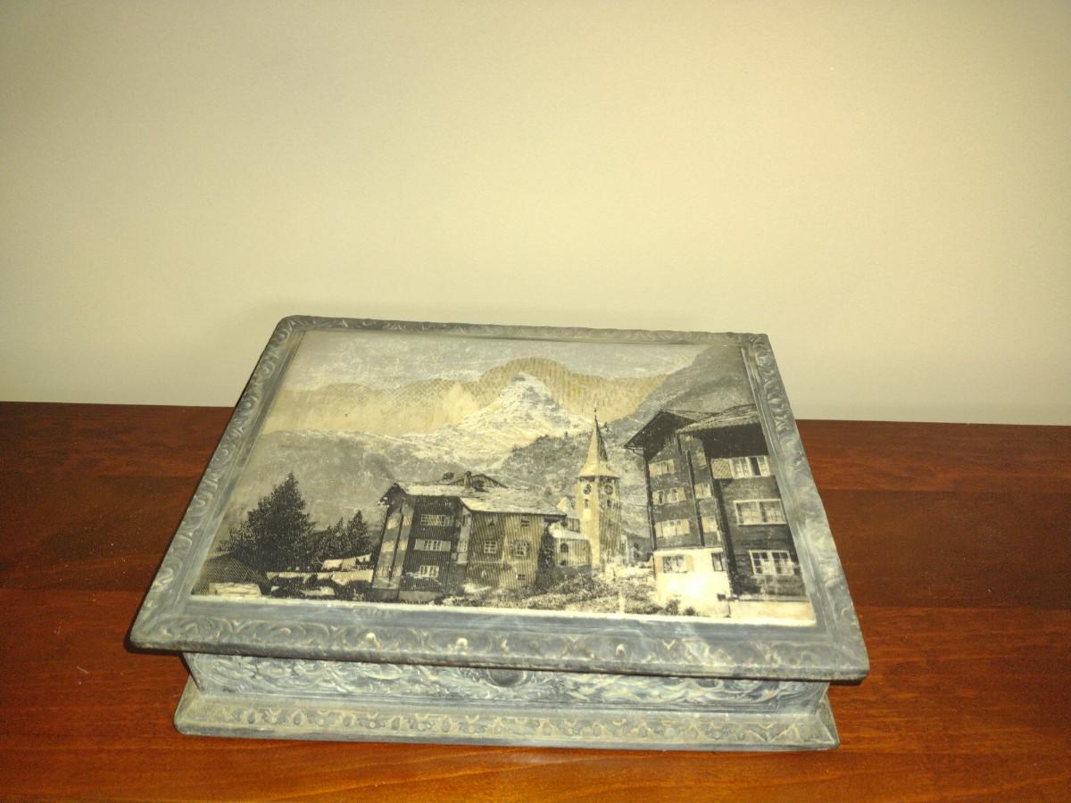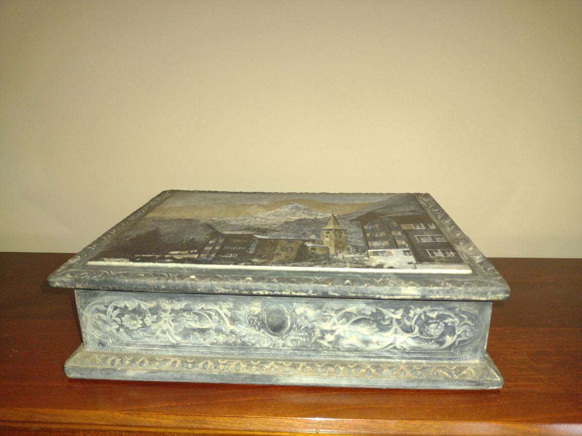 Incolay Stone Storage Box with Town/Mountain Scape- Approx 11" x 8 1/2" x 3 1/4"