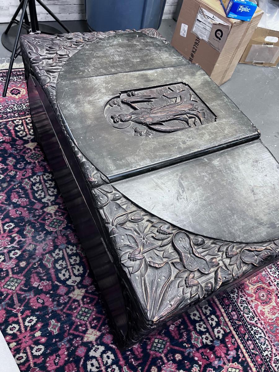 Used. AWESOME Hand Carved Functional Storage Chest and Utilitarian ART! Measures 39 x23 x21 See Photos for Awesomeness!