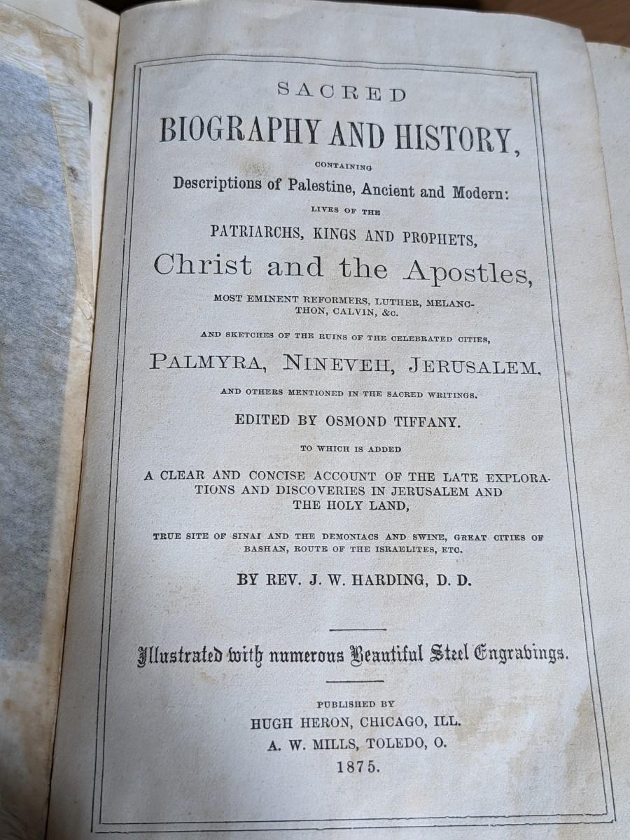 Incredible Copy of Sacred Biography and History of the Holy Land, 1875