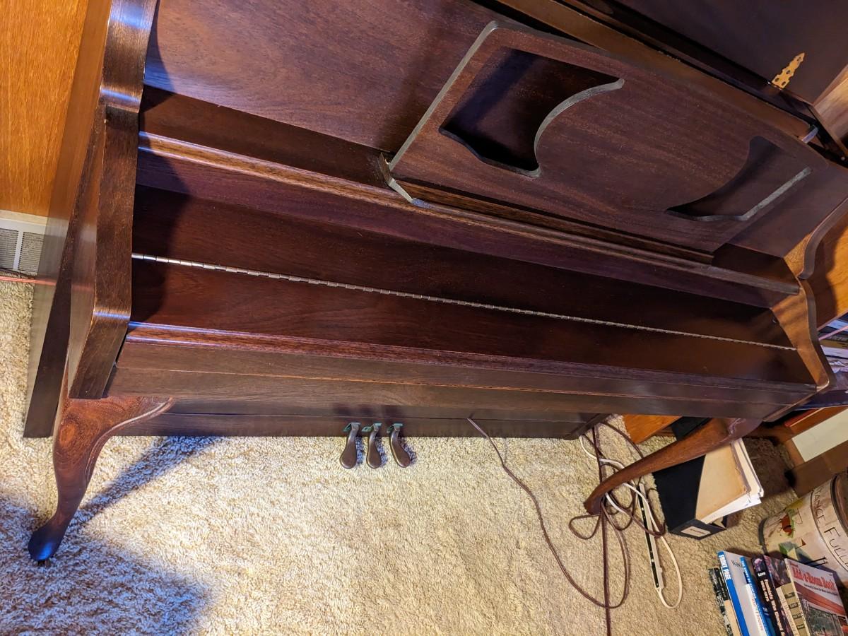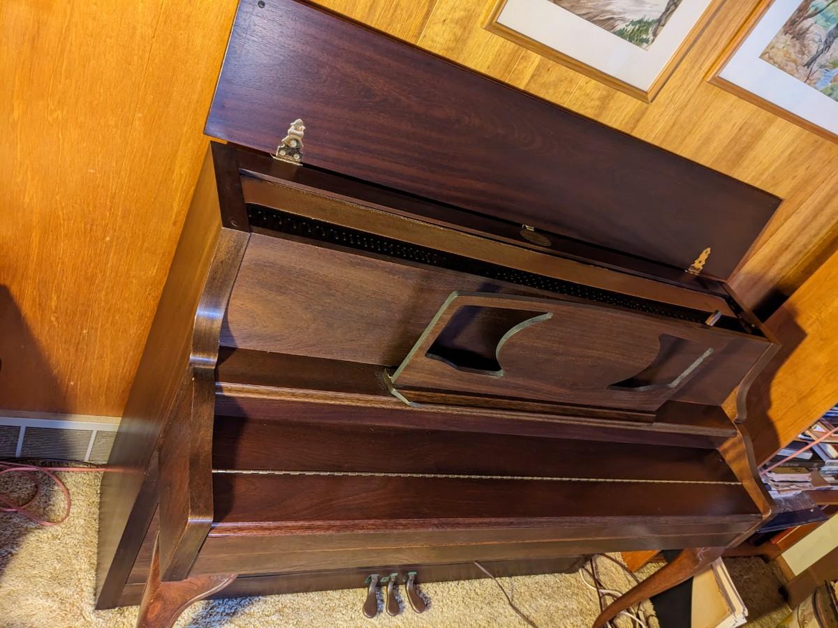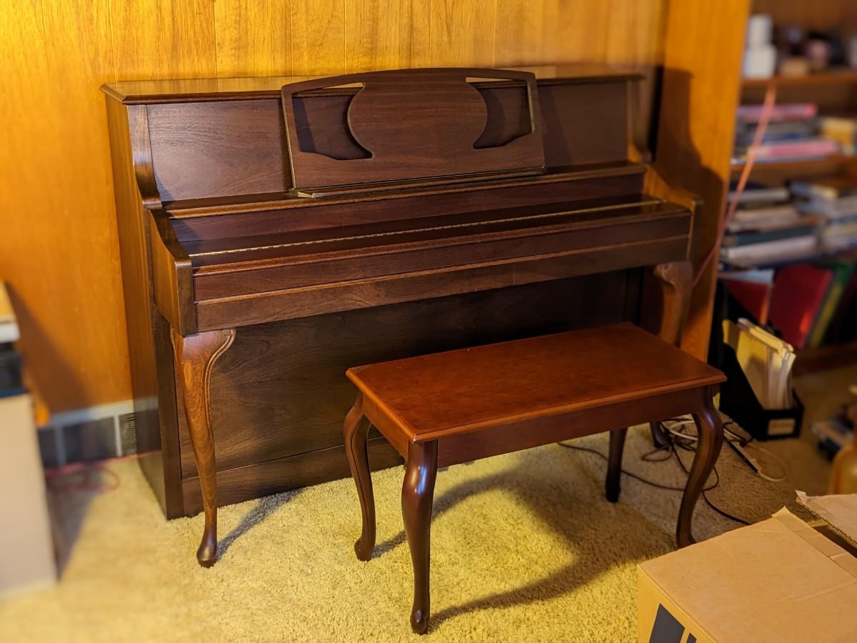 Built in humidifier. Adequate but unmatched bench full of music!
