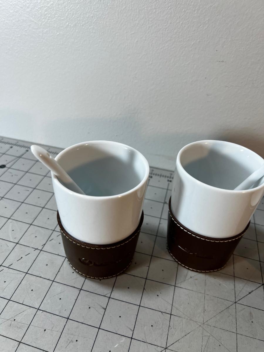 Incredible LEXUS Tea Cup with Leather Cozy and Ceramic Spoon