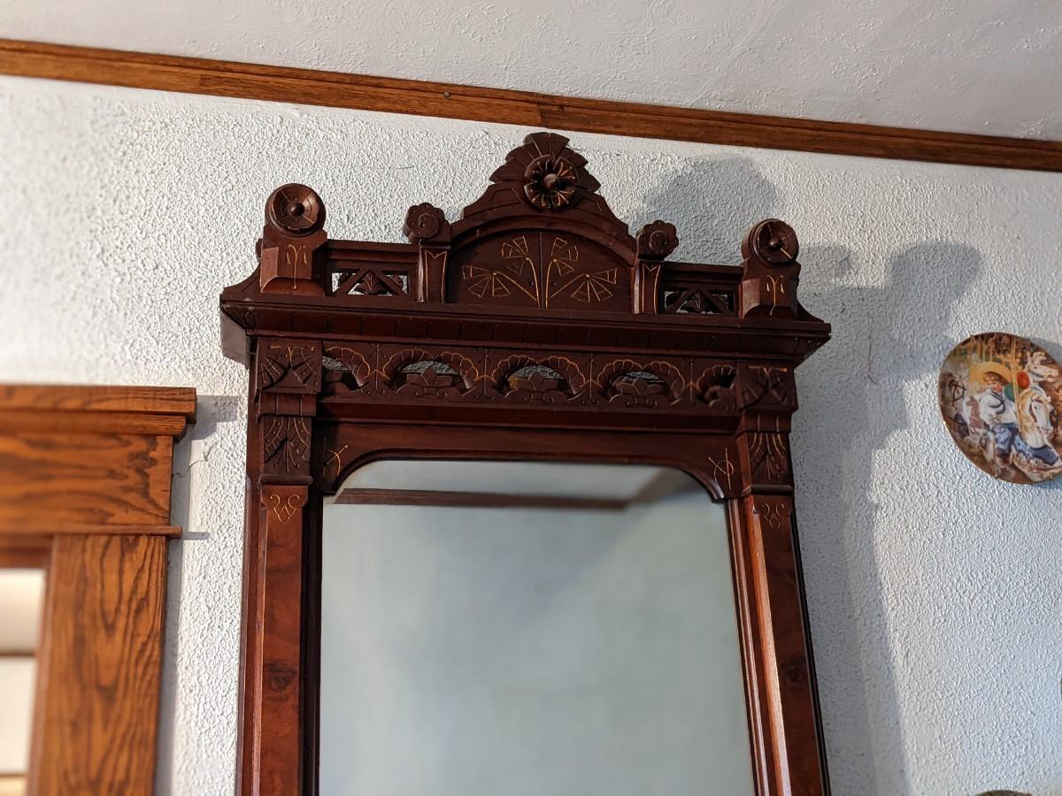 Incredible Rare Find Carved Walnut Pier Wall Mirror