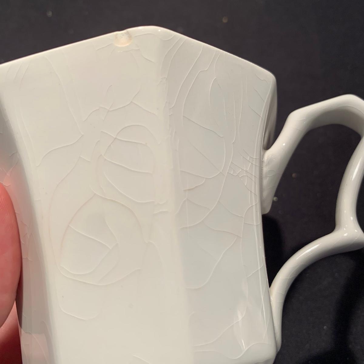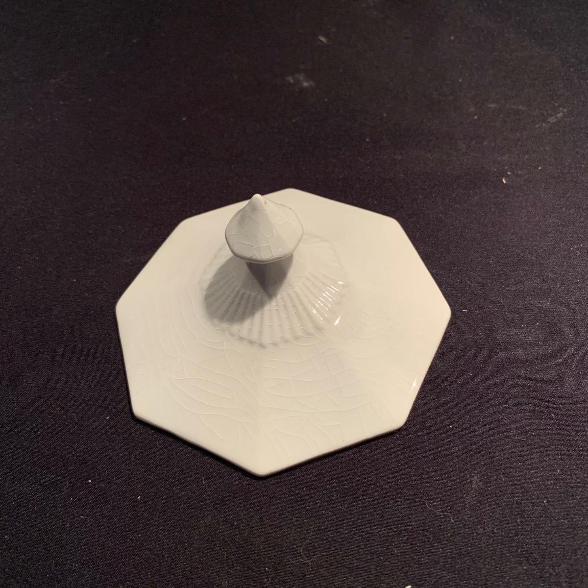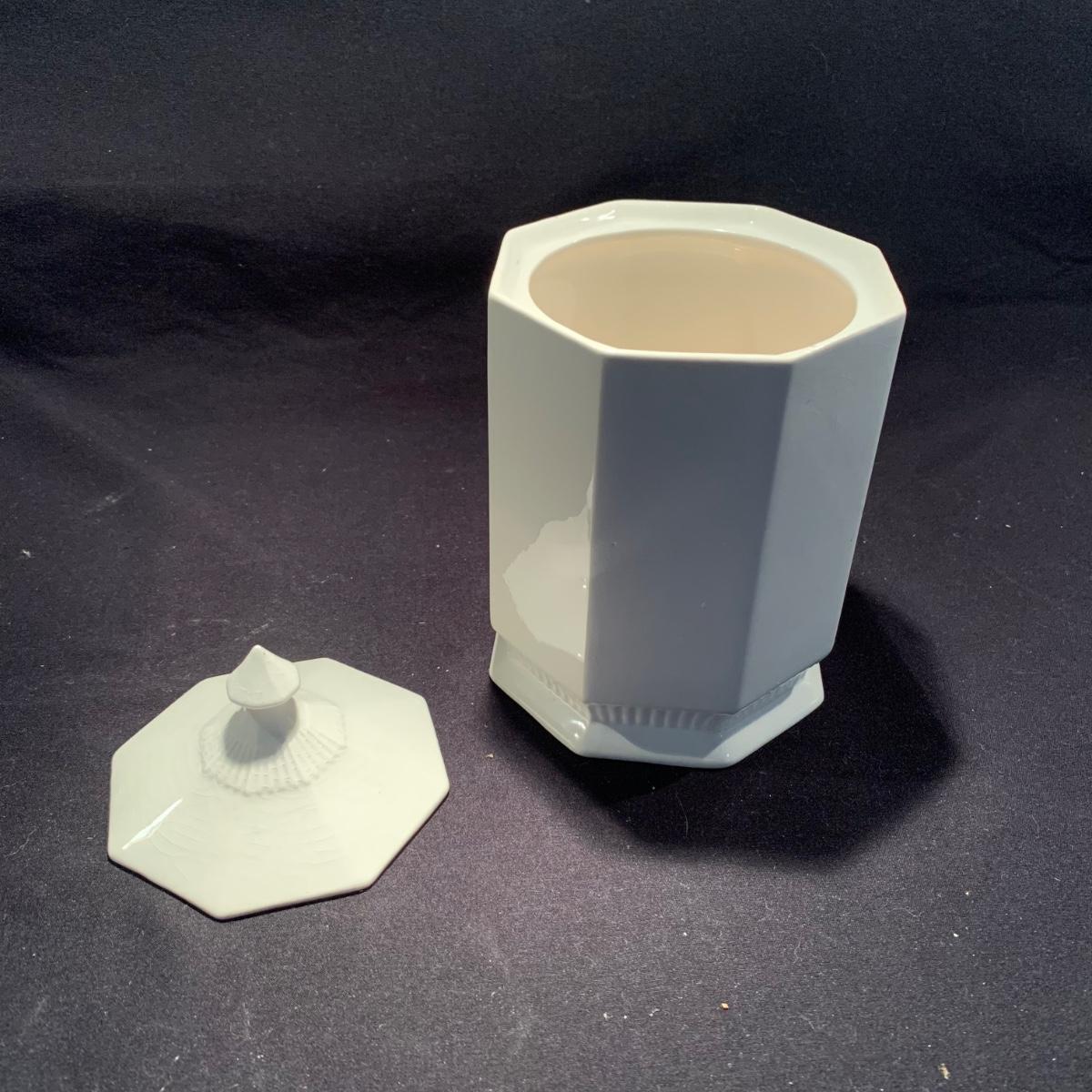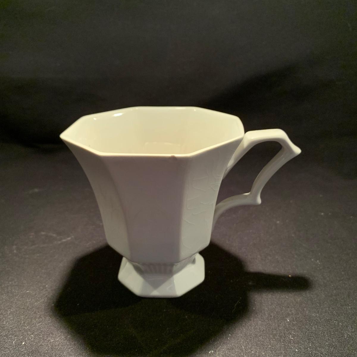This lot includes a set of white ceramic Castleton set. Included are small plates, serving dishes, tea cups, a pitcher, and more. Some of the pieces have chips and signs of cracks (see photos). The largest piece measures about 8in x 7.5in. The pitcher is a Wm. Adams & Sons piece, rather than a Castleton. The small lidded dish is unmarked, so we cannot confirm its maker. Shipping available.