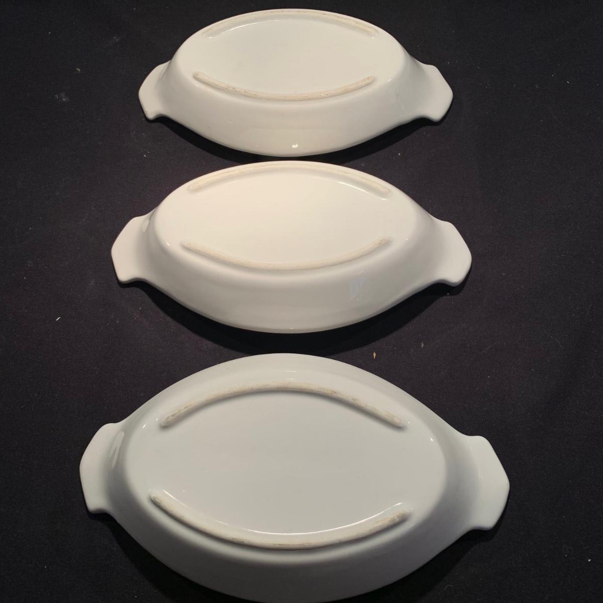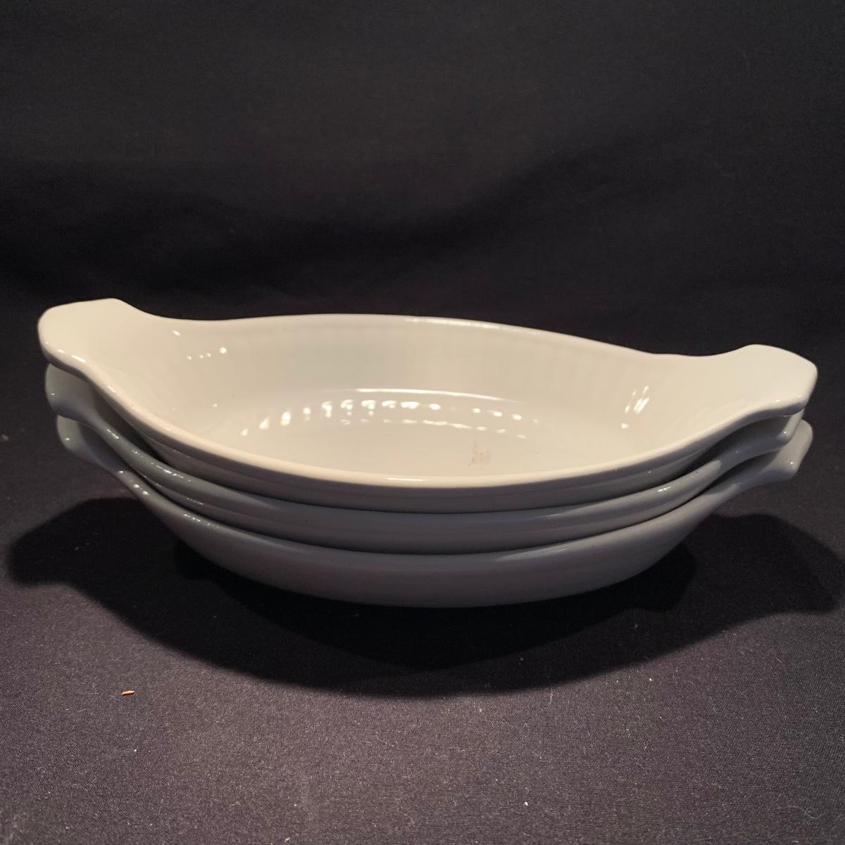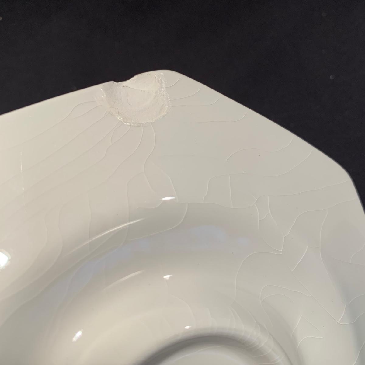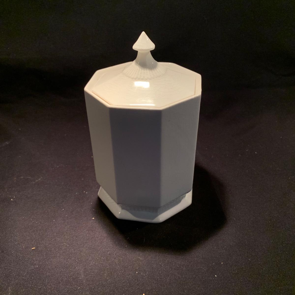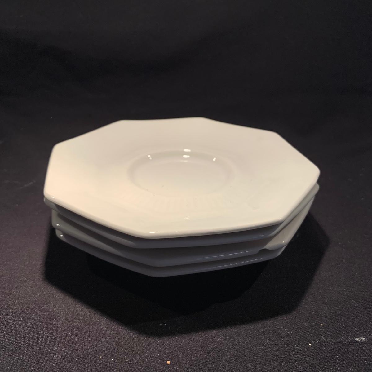 This lot includes a set of white ceramic Castleton set. Included are small plates, serving dishes, tea cups, a pitcher, and more. Some of the pieces have chips and signs of cracks (see photos). The largest piece measures about 8in x 7.5in. The pitcher is a Wm. Adams & Sons piece, rather than a Castleton. The small lidded dish is unmarked, so we cannot confirm its maker. Shipping available.