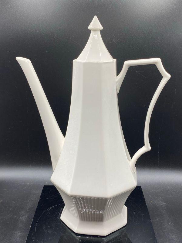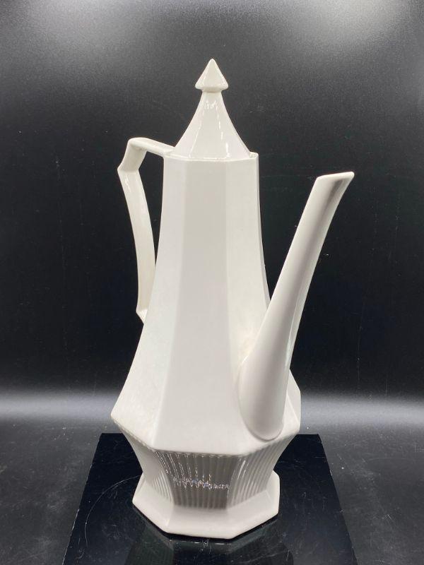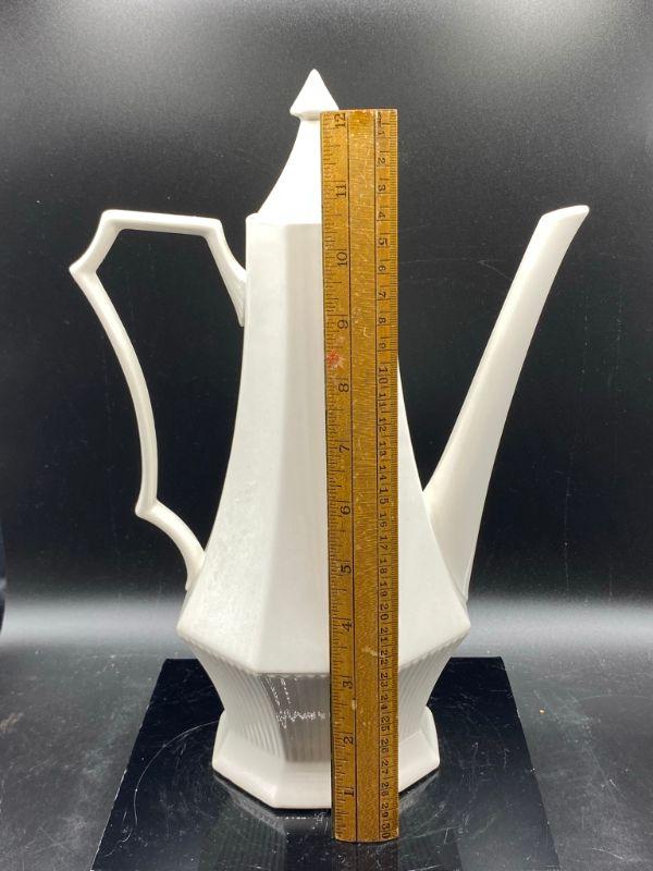 White MidCentury Tea Pot. Independence Ironstone, made in Japan. Great lines, displays beautifully. Stands over 12".