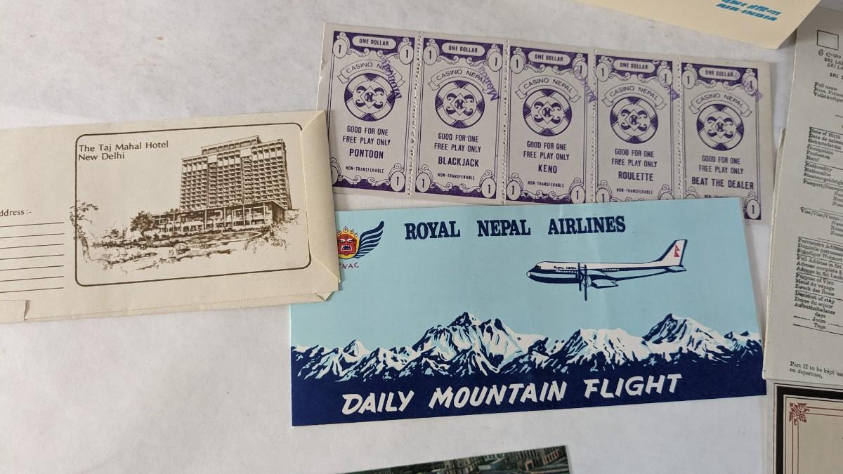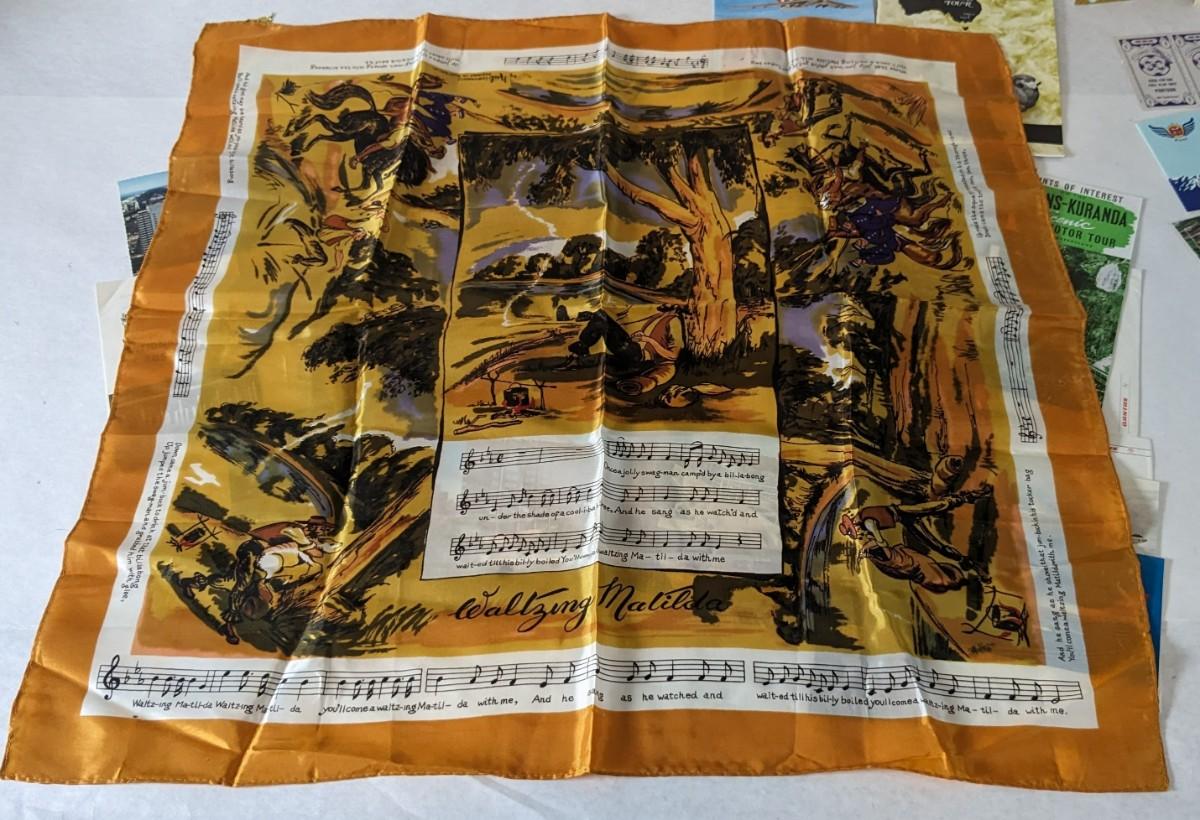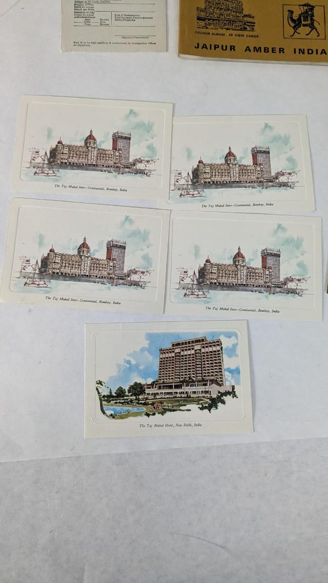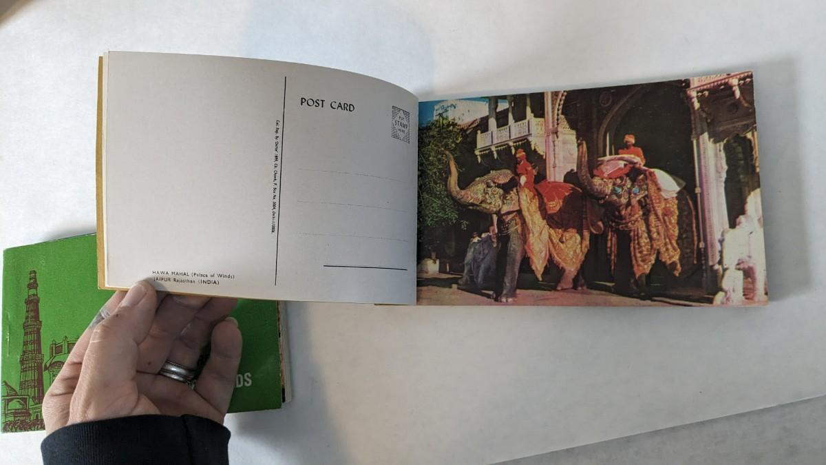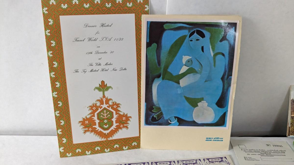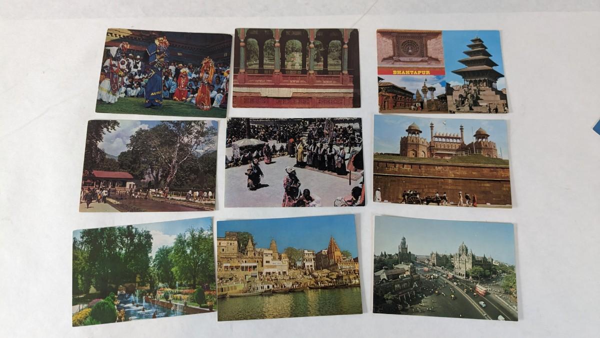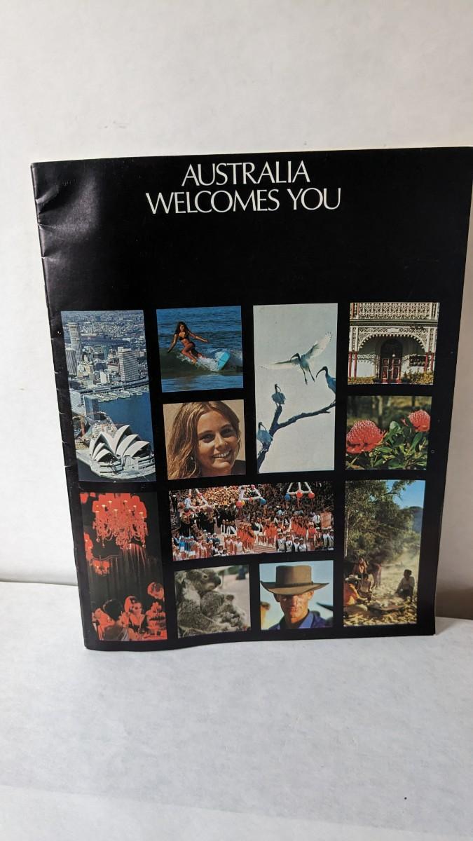 a beautiful display of travelling ephemera and postcards from the late 70's early 80's. Includes incredible slides, postcard books, mainly unused loose postcards, various travel ephemera, a bona fide boomerang, beautiful scarf, original muslin bag for shipping, and so much more! Very neat little assortment from both areas of the world!