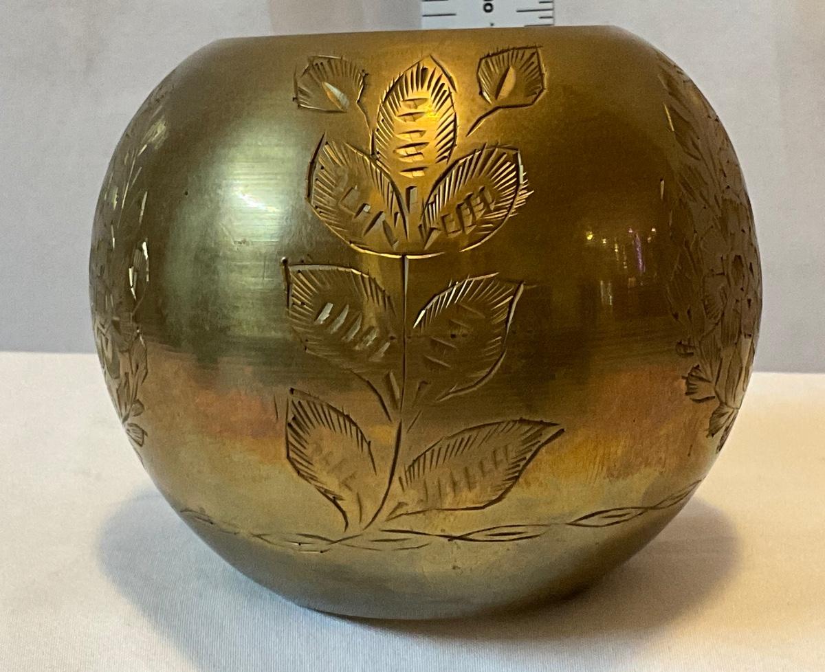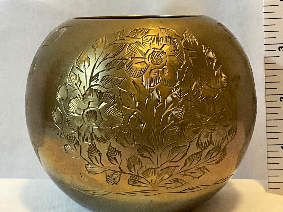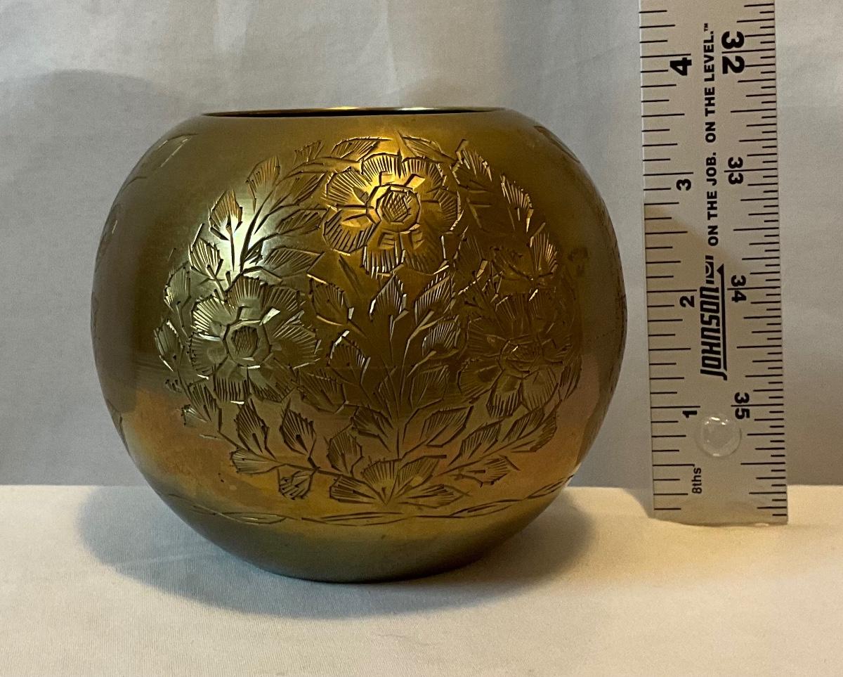 India Brass 1960’s beautifully engraved globe shaped bowl
