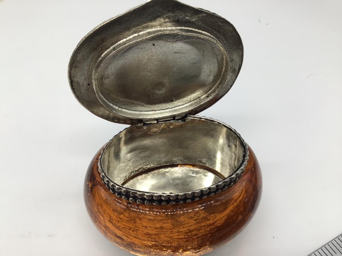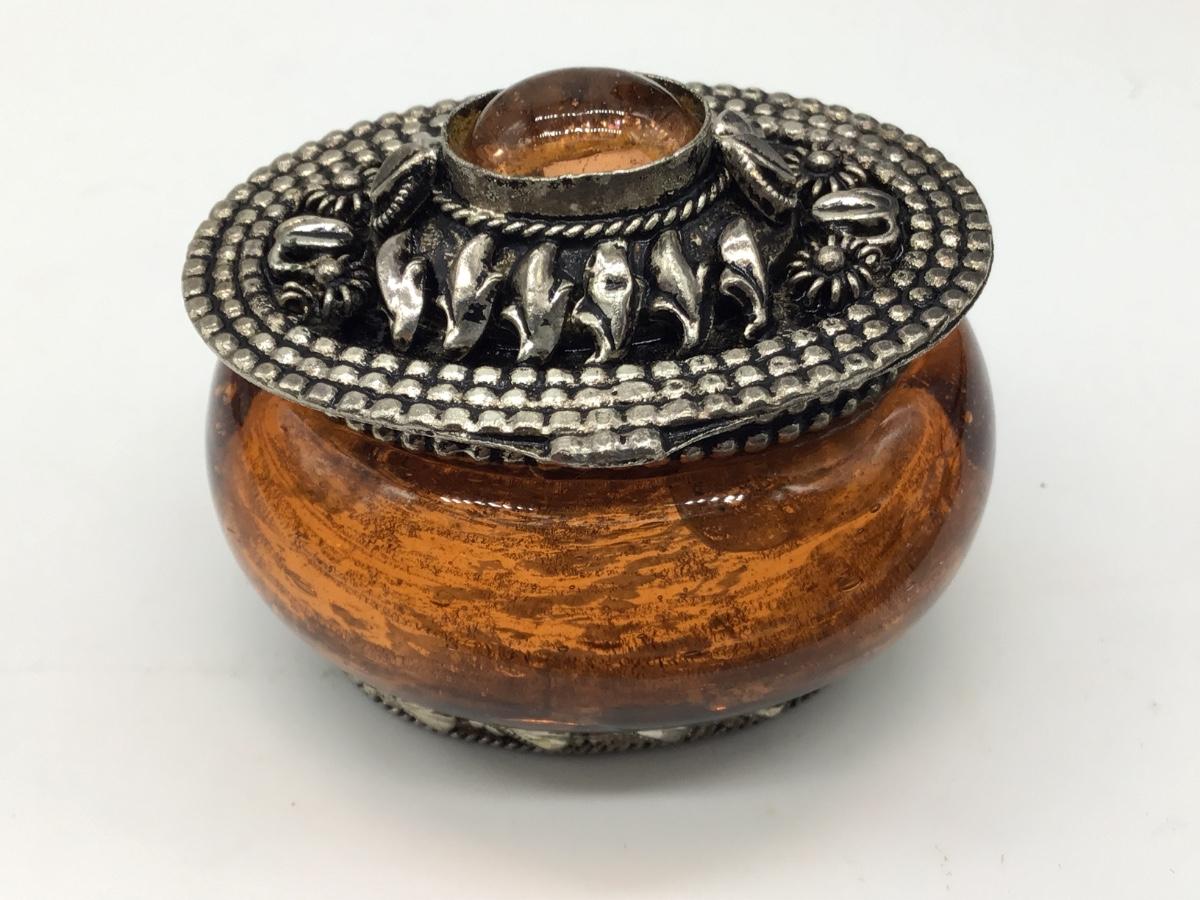 India Hinged Silver Toned Snuff/ Pill Box with Glass Stone On Top 2”