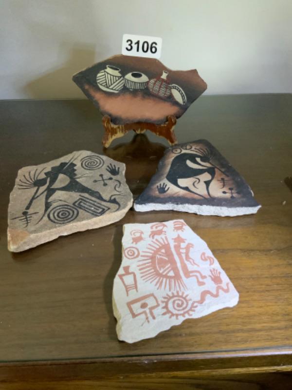 Native American sand art on stone Lot 3106