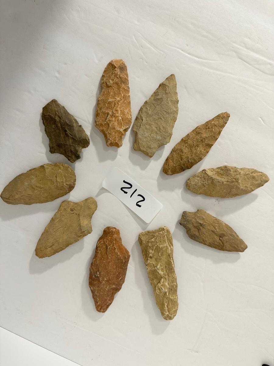Indian Artifact Arrowhead Lot, 10 pieces, as pictured
